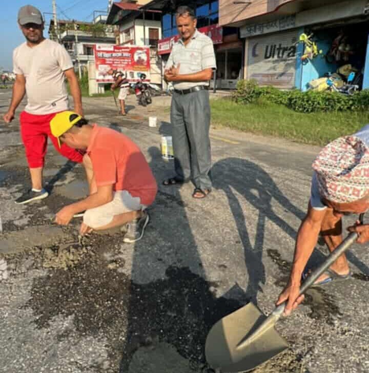 भरतपुर महानगरपालिका–४ ,धर्मपथ टोलअन्तर्गत धर्मचोकदेखि पश्चिम २ सय मिटर अगाडिसम्मको सडकखण्डको मर्मत कार्य आज सम्पन्न गरिएको छ। “हाम्रो वडा हामी बनाउँछौं” अभियानअन्तर्गत स्थानीयवासीहरूको श्रम, लगानी र सहभागितामा गरिएको उक्त कार्यले आवागमन सहज र सुरक्षित बनेको छ।