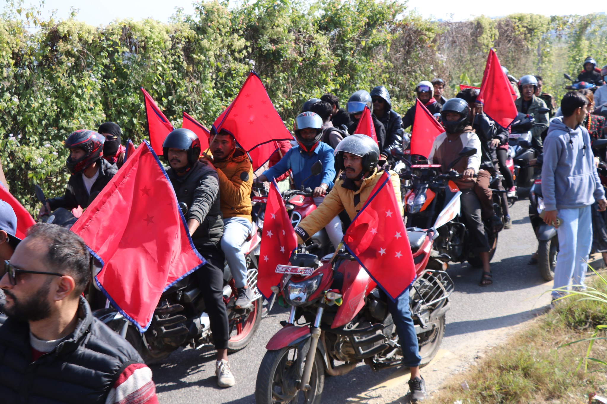 पार्टी घोषणा अघि भरतपुरको रिंग रोडमा मोटरसाइकल र्याली निकालिएको थियो ।
