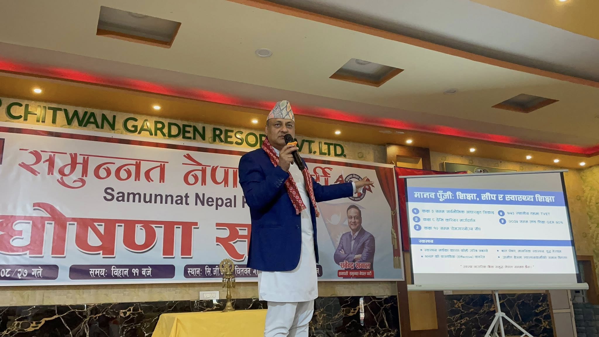 पार्टी घोषणा गर्दै सवेन्द्र खनालले ग्रामिण समृद्धि बिना राष्ट्रिय स्थिरता संभव नभएकाले ग्रामीण विकासमा ध्यान दिँदै कृषि विकासलाई पार्टीले प्रमुख प्राथमिकतामा राखेको बताए । उनले कक्षा १२ सम्म रोजगारयोग्य सीप प्रदान गर्ने र सन् २०३५ सम्ममा उच्च शिक्षा दर ४० प्रतिशत पु¥याउने पार्टीको लक्ष्य रहेको बताए । स्वास्थ्य खर्चका कारण कोही पनि गरिब नबन्ने गरी स्वास्थ्यमा सुधार ल्याइने उनले बताएका छन् । १० वर्षमा १५ लाख शिष्ट रोजगारी सृजना गर्ने उनले बताए ।