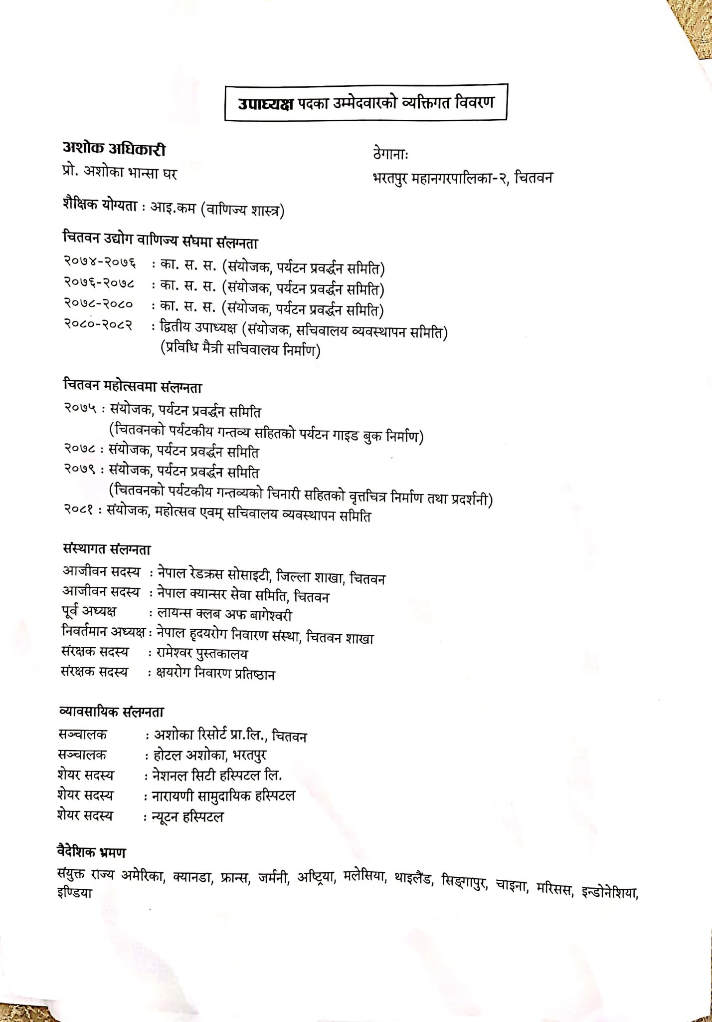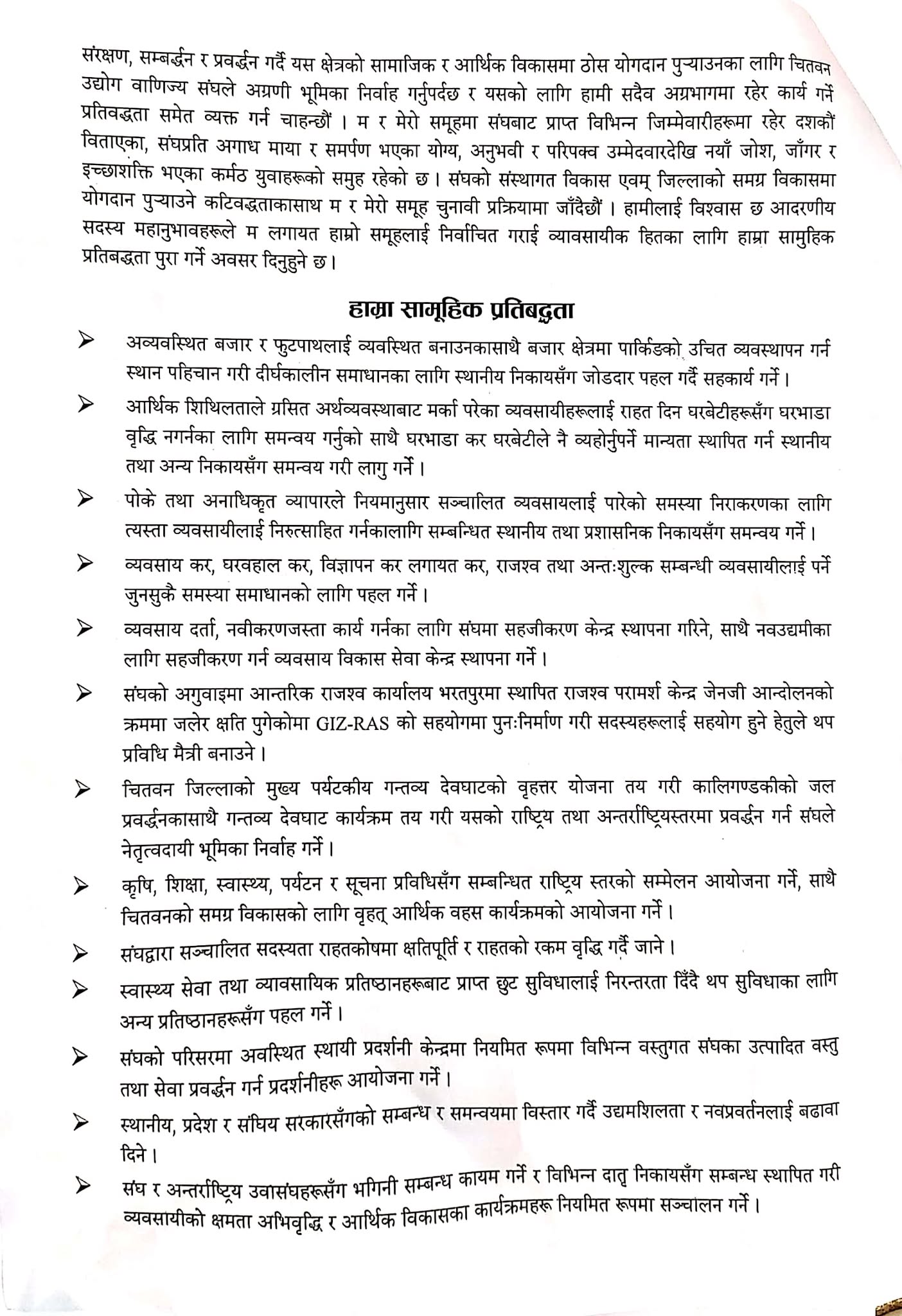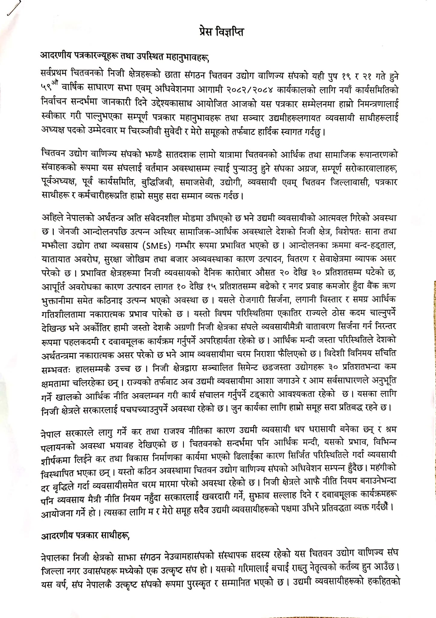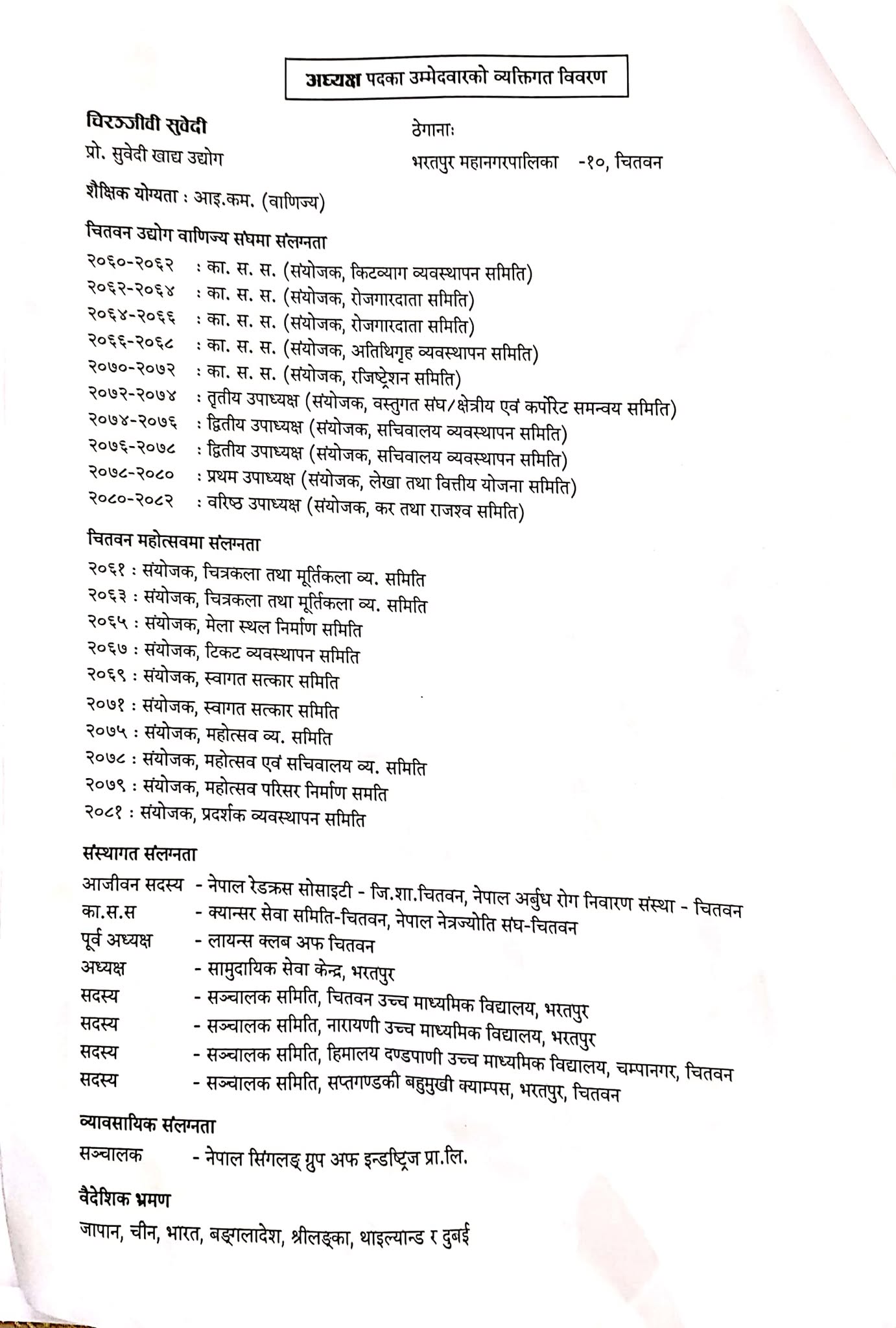 उवासंघ चितवनको अध्यक्षमा चिरञ्जीवी सुवेदी समुहको उम्मेद्वारी घोषणा, यस्तो छ सामुहिक प्रतिवद्धता
