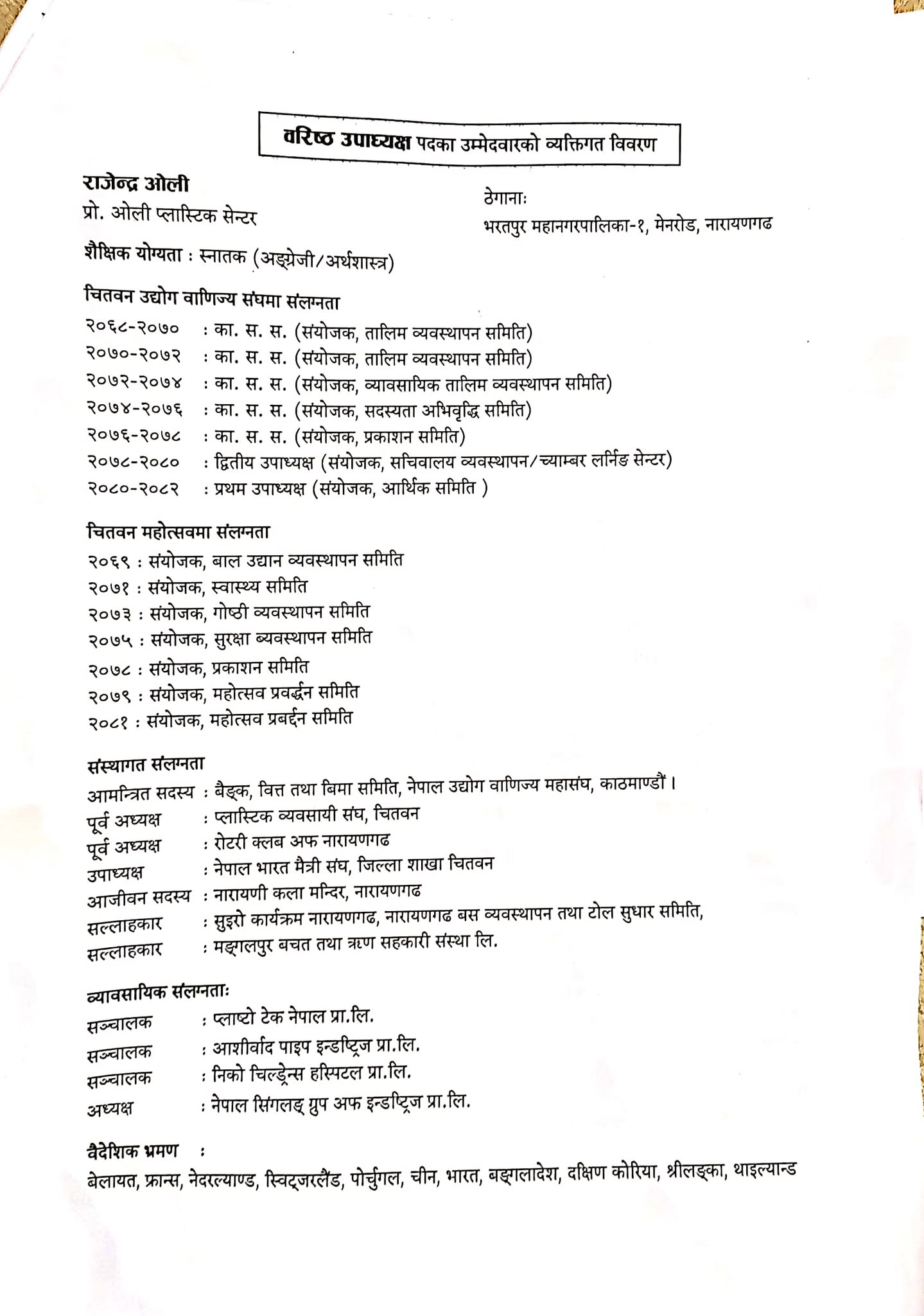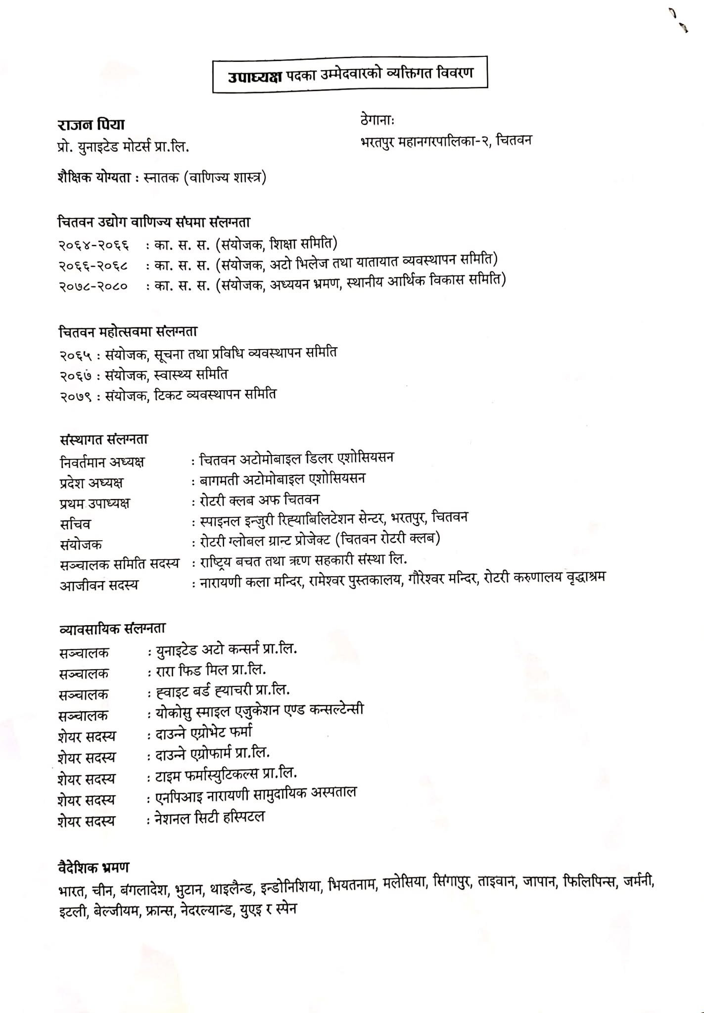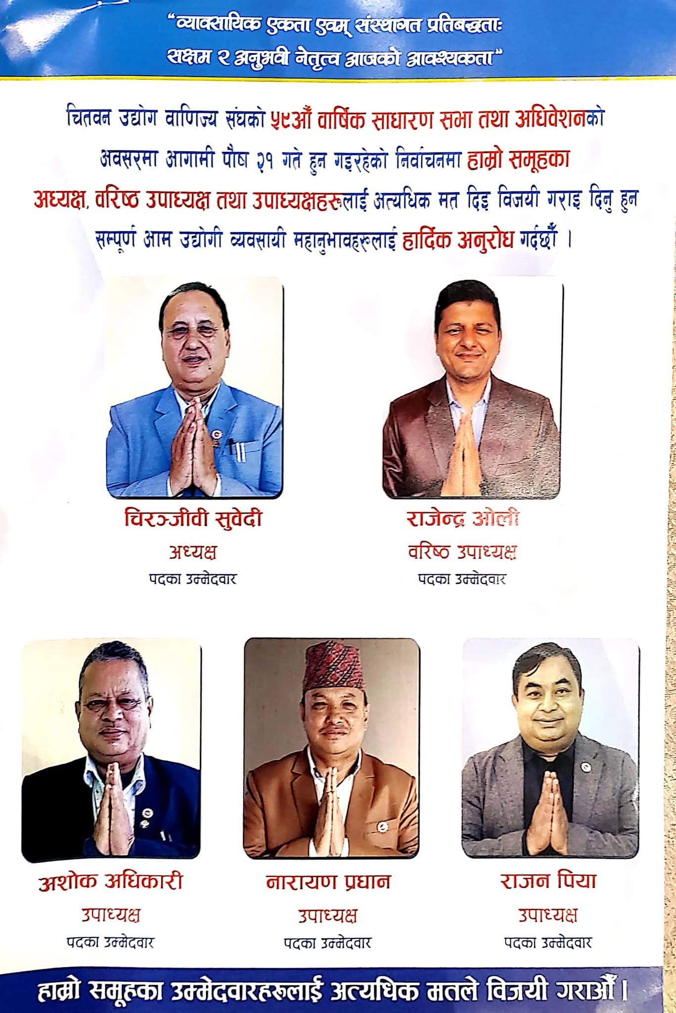 उवासंघ चितवनको अध्यक्षमा चिरञ्जीवी सुवेदी समुहको उम्मेद्वारी घोषणा भएको छ । हेरौं, सामुहिक प्रतिवद्धता ।