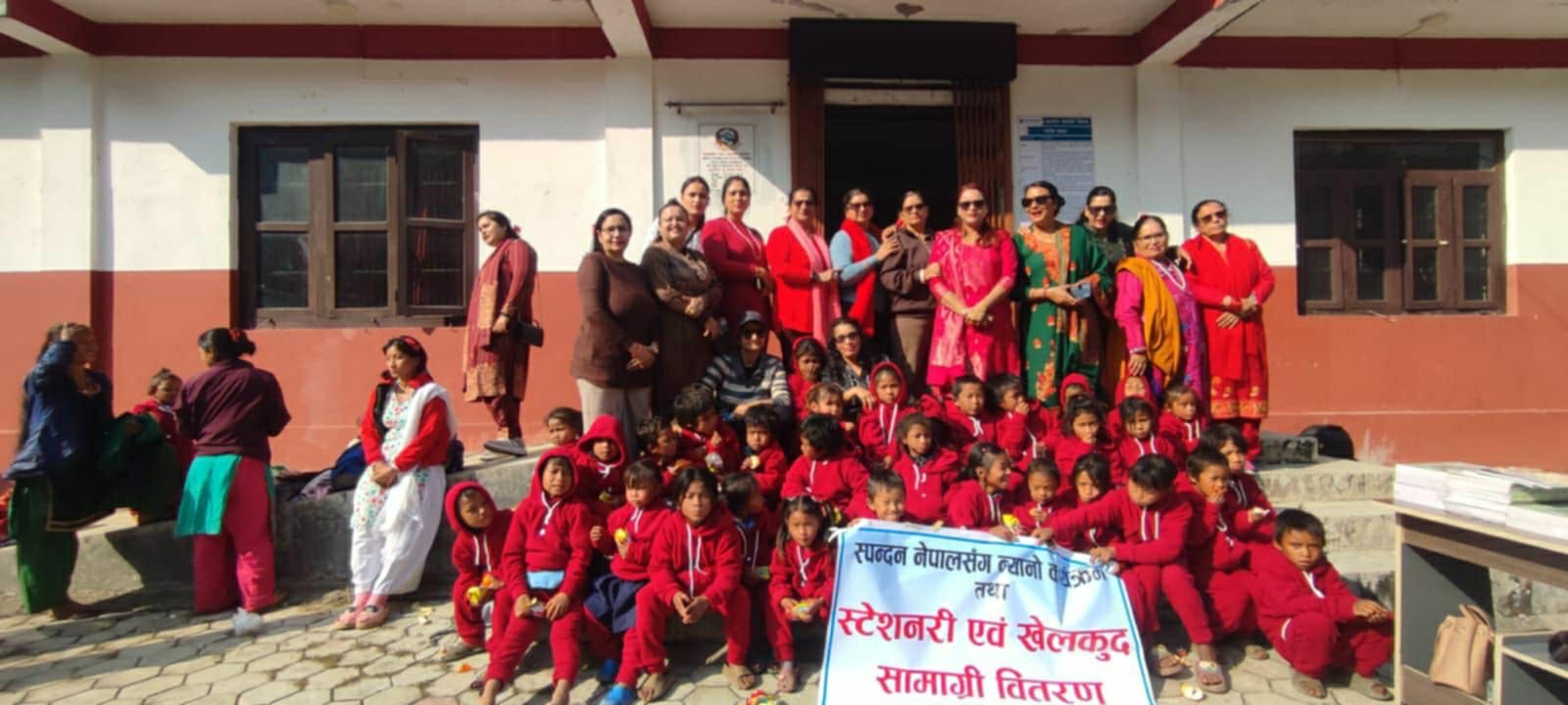 भरतपुर महानगरपालिका–१० का महिलाहरुको संस्था ‘स्पन्दन नेपाल’ले कालिका नगरपालिका–११ सिद्धि दौतेस गाउँको विद्यालयका बालबालिकालाई न्यानो लुगा, स्टेसनरी र खेलकुद सामग्री वितरण गरेको छ ।