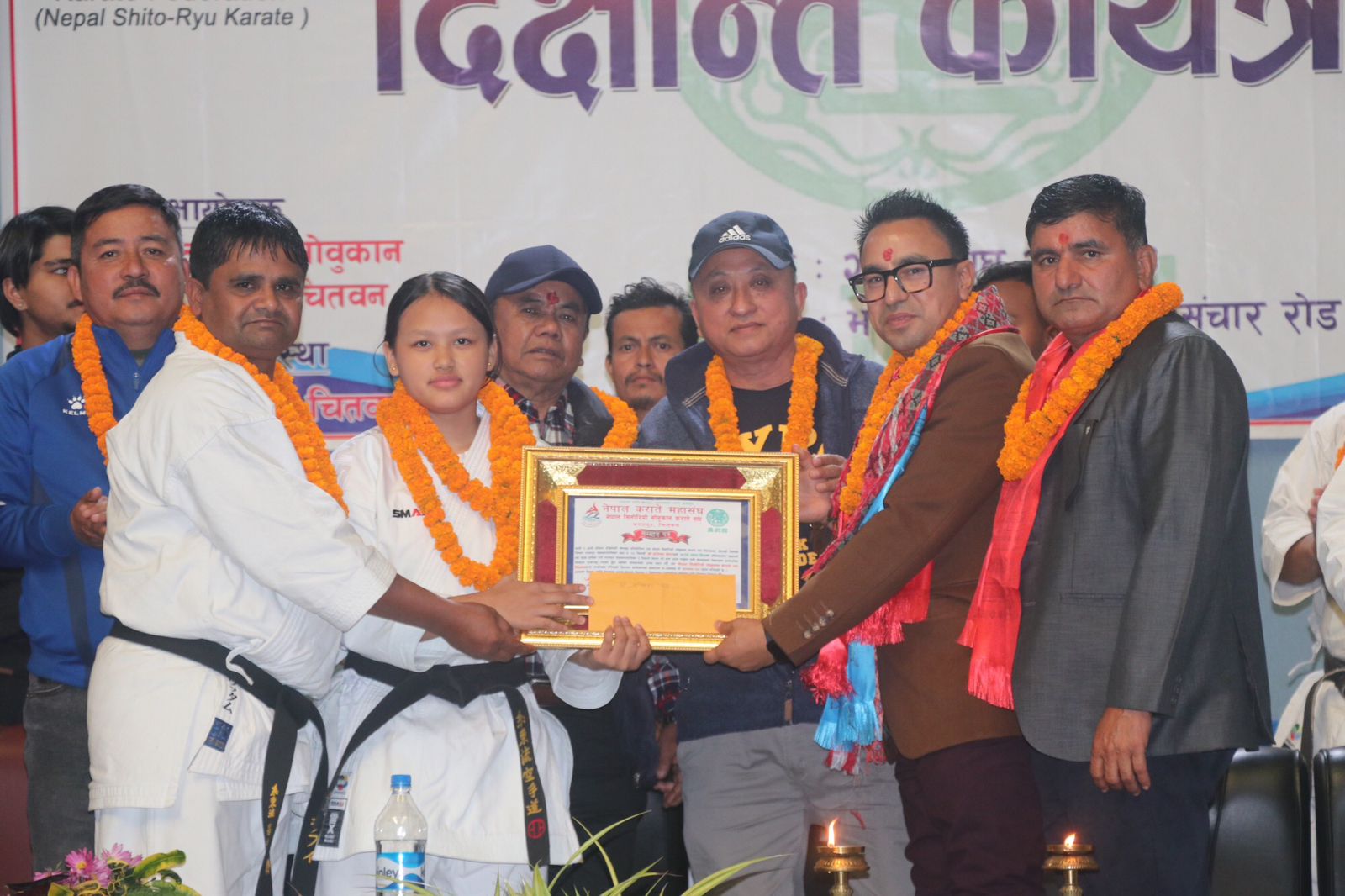 यसैबीच सोही कार्यक्रममा करातेकी अन्तराष्ट्रिय पदक विजेता प्रजिष्मा श्रेष्ठलाई नगदसहित सम्मान गरिएको छ । प्रजिष्माले अन्तराष्ट्रिय स्तरमा पाएको सफलताको उच्च मुल्याङ्कन गर्दै उनलाई सम्मान गरिएको संघका अध्यक्ष रफि अन्सारीले जानकारी दिए ।
