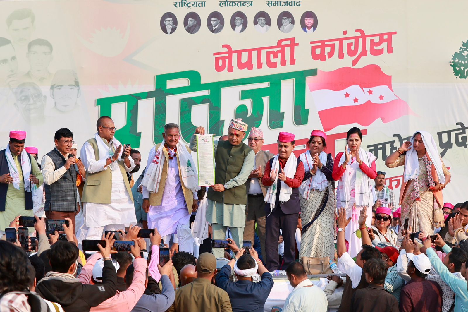 कांग्रेसले आज जनकपुरधामबाट चुनावी अभियान शंखनाद गरेको हो । सभामा कांग्रेस सभापति थापाले प्रतिज्ञापत्र सार्वजनिक गर्ने कार्यक्रम छ । चुनावी सभालाई सम्बोधन गर्न उपसभापति एवं चुनावी कमान्डर विश्वप्रकाश शर्मा जनकपुरधाम पुगेका छन् । मञ्चमा कांग्रेस नेता एवं धनुषा ३ का उम्मेदवार विमलेन्द्र निधि, महेन्द्र राय यादव, फरमुल्लाह मन्सुरलगायत उपस्थित छन् ।