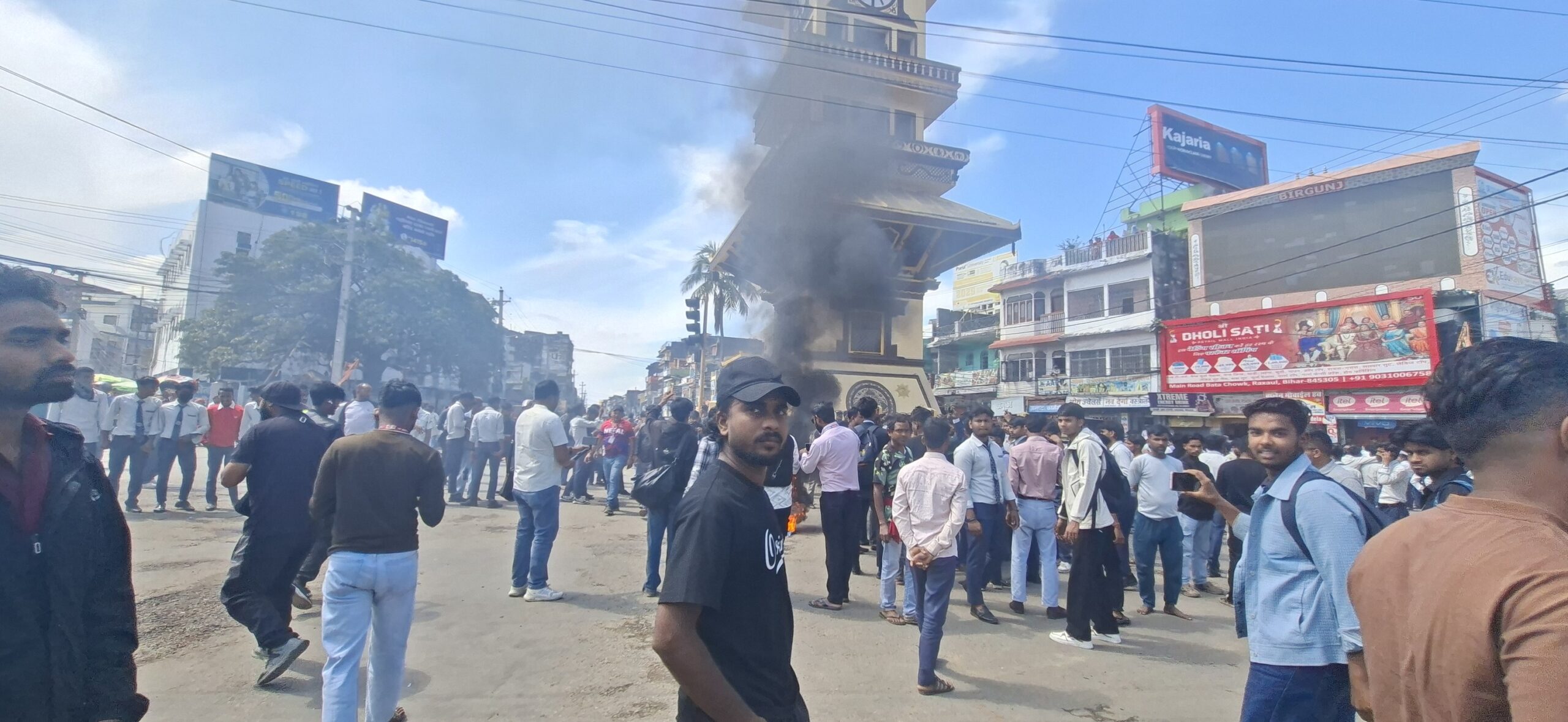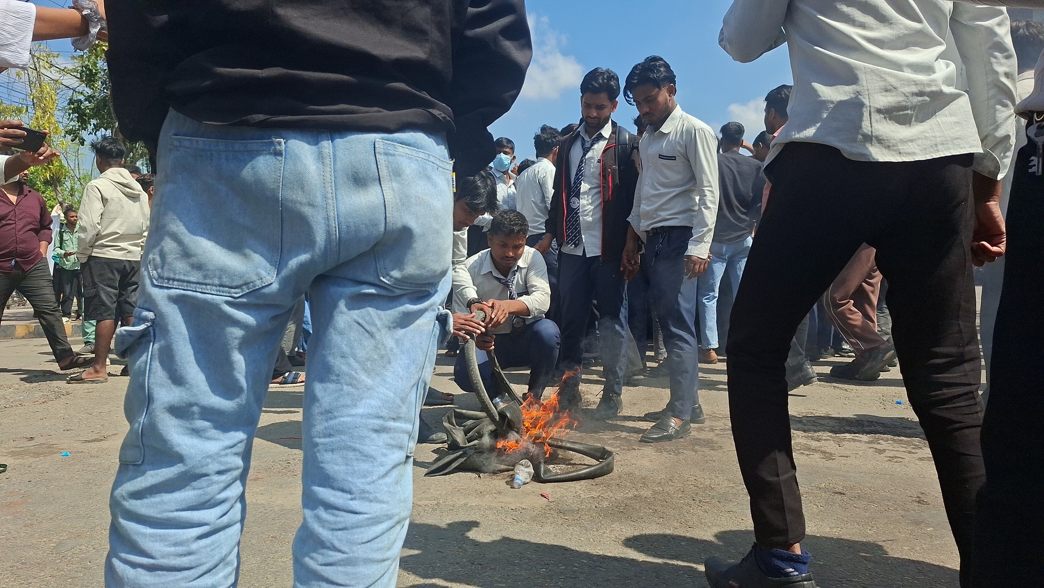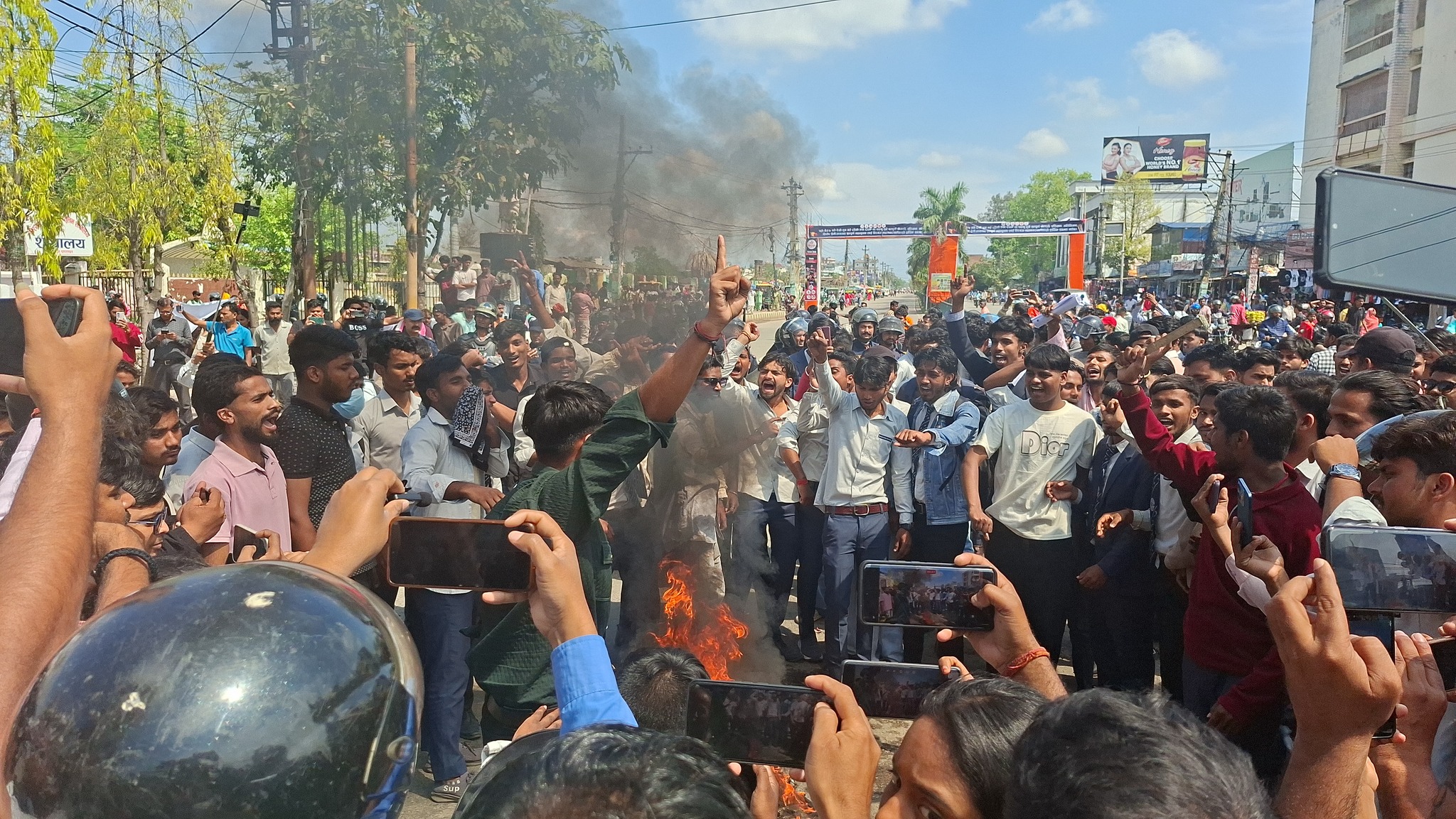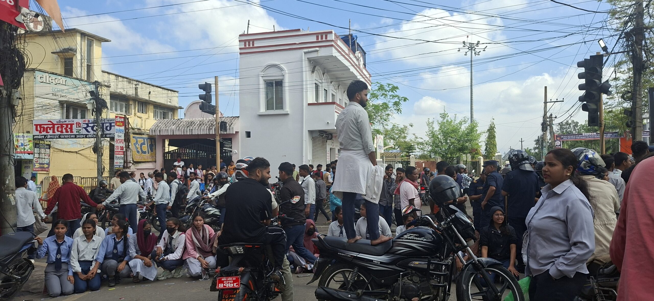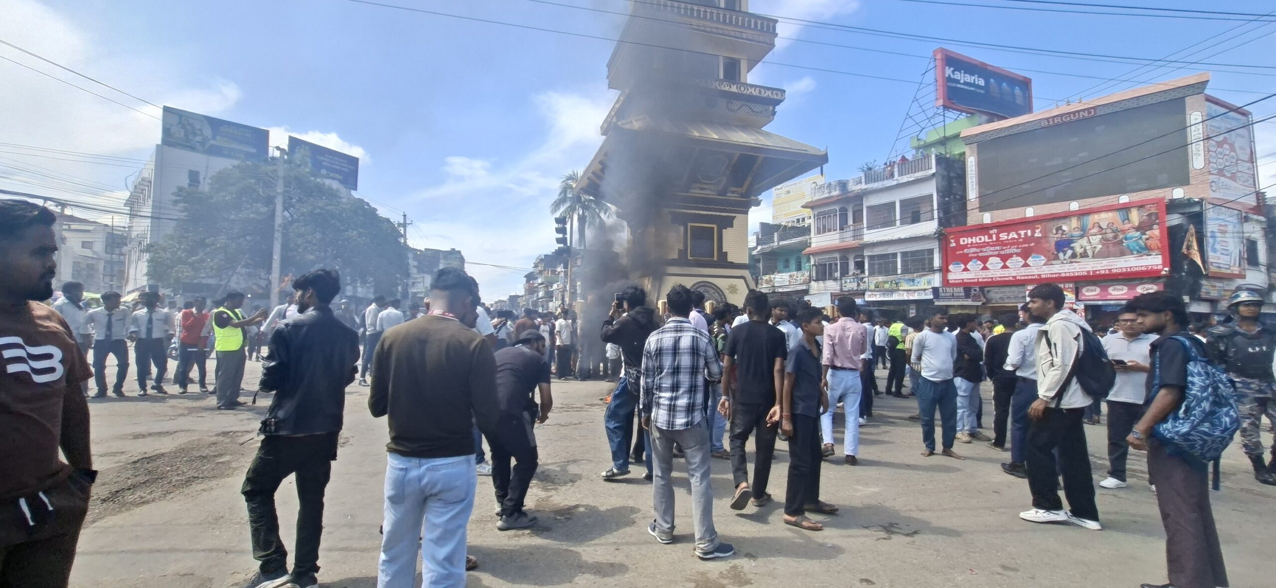 क्याम्पसबाट निस्किएको आक्रोशित विद्यार्थीहरूको समूह वीरगन्जको मुटु मानिने घण्टाघर चोकमा पुगेर टायर बाल्दै प्रदर्शनमा उत्रियो । प्रदर्शनका कारण वीरगन्जको मुख्य सडक दुवैतर्फी रूपमा अवरुद्ध भयो भने यातायात पूर्णतः ठप्प बन्यो ।