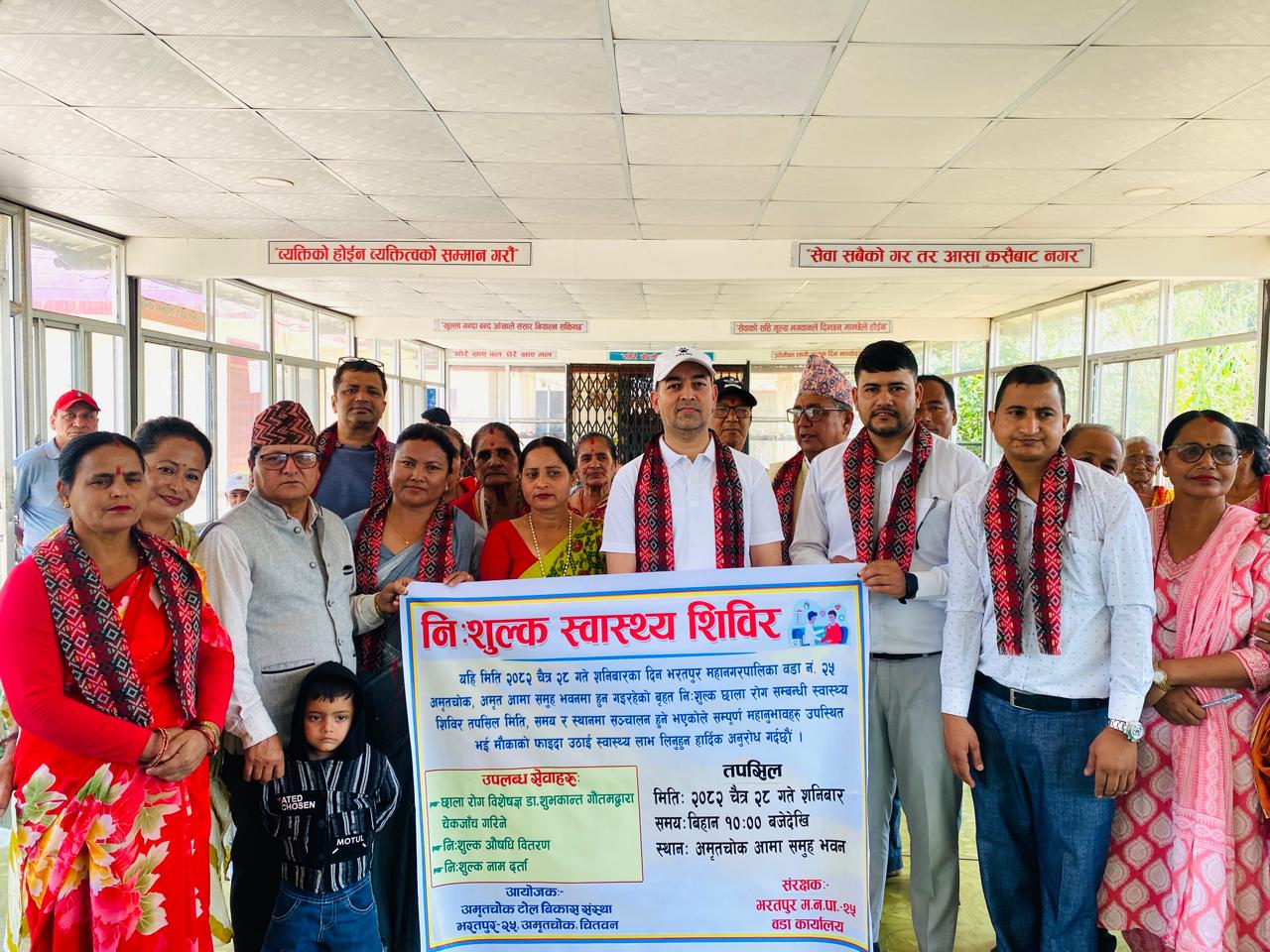 भरतपुर महानगरपालिका–२५ अमृतचोकमा छाला, यौन तथा कुष्ठरोग सम्बन्धी निःशुल्क स्वास्थ्य शिविर सम्पन्न भएको छ। दया हेल्थ केयर सेन्टरको प्राविधिक सहयोग, अमृतचोक टोल विकास संस्थाको आयोजनामा तथा भरतपुर–२५ वडाको संरक्षकत्वमा शिविर सम्पन्न गरिएको हो।