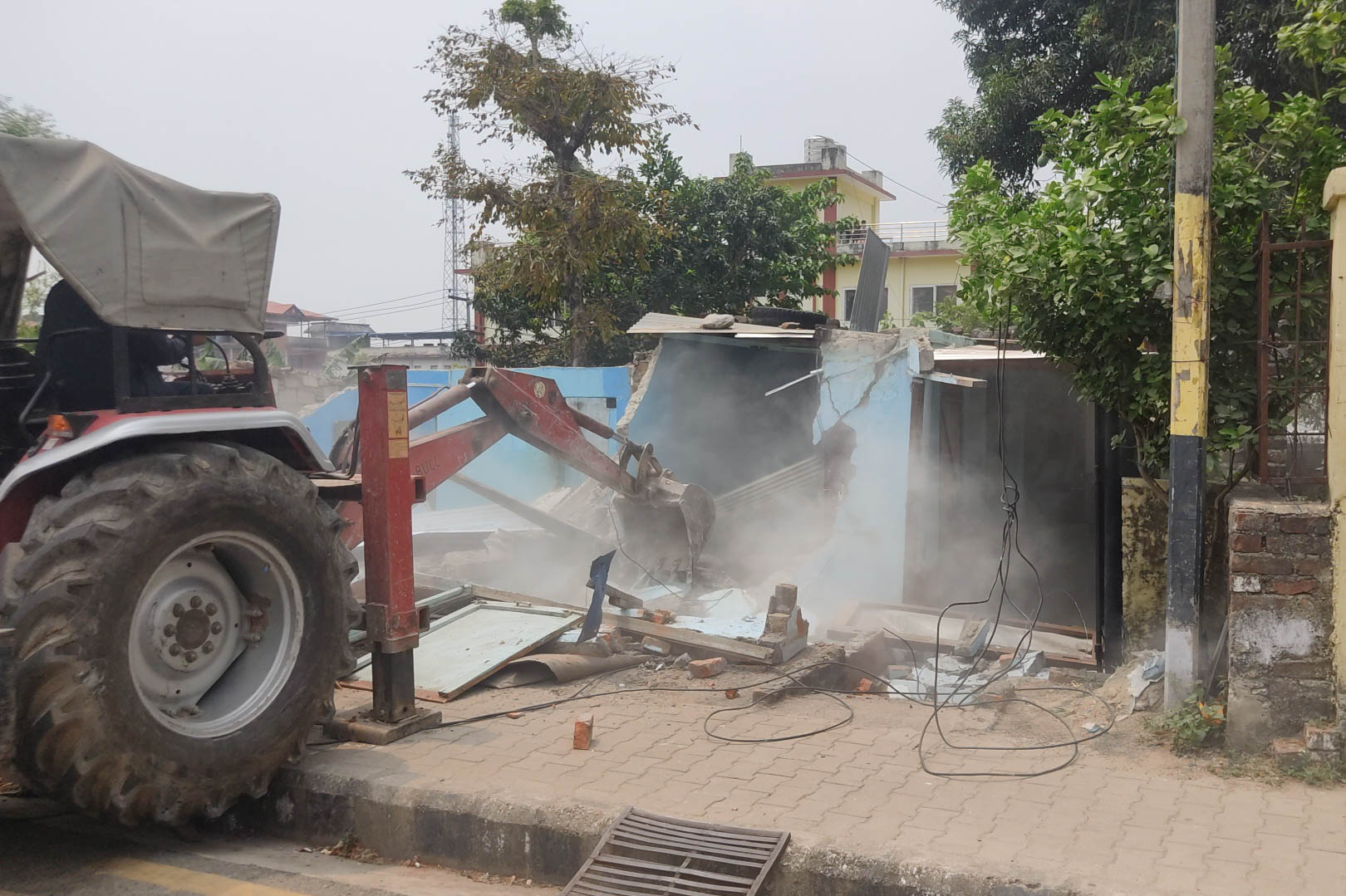 बुटवलस्थित उच्च अदालतको अतिक्रमित संरचना हटाउन थालियो (तस्बिरसहित)