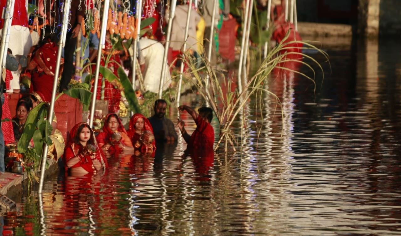 काठमाडौंमा यसरी मनाइँदैछ छठ, अस्ताउँदो सूर्यलाई अर्घ्य दिइयो