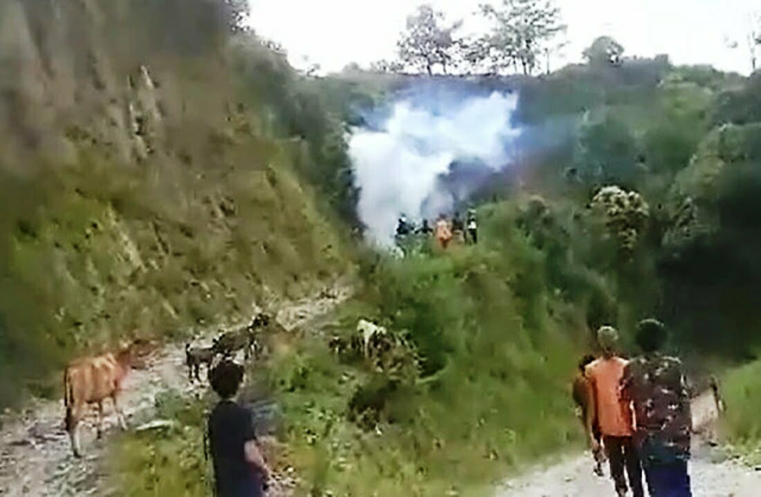 बञ्चरेडाँडामा स्थानीयको अवरोधका बीच प्रहरीले गर्यो हवाईफायर