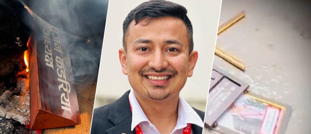 असन्तुष्ट पक्षले सुजन कडरियाको तस्वीर र नेमप्लेट जलाइदिए