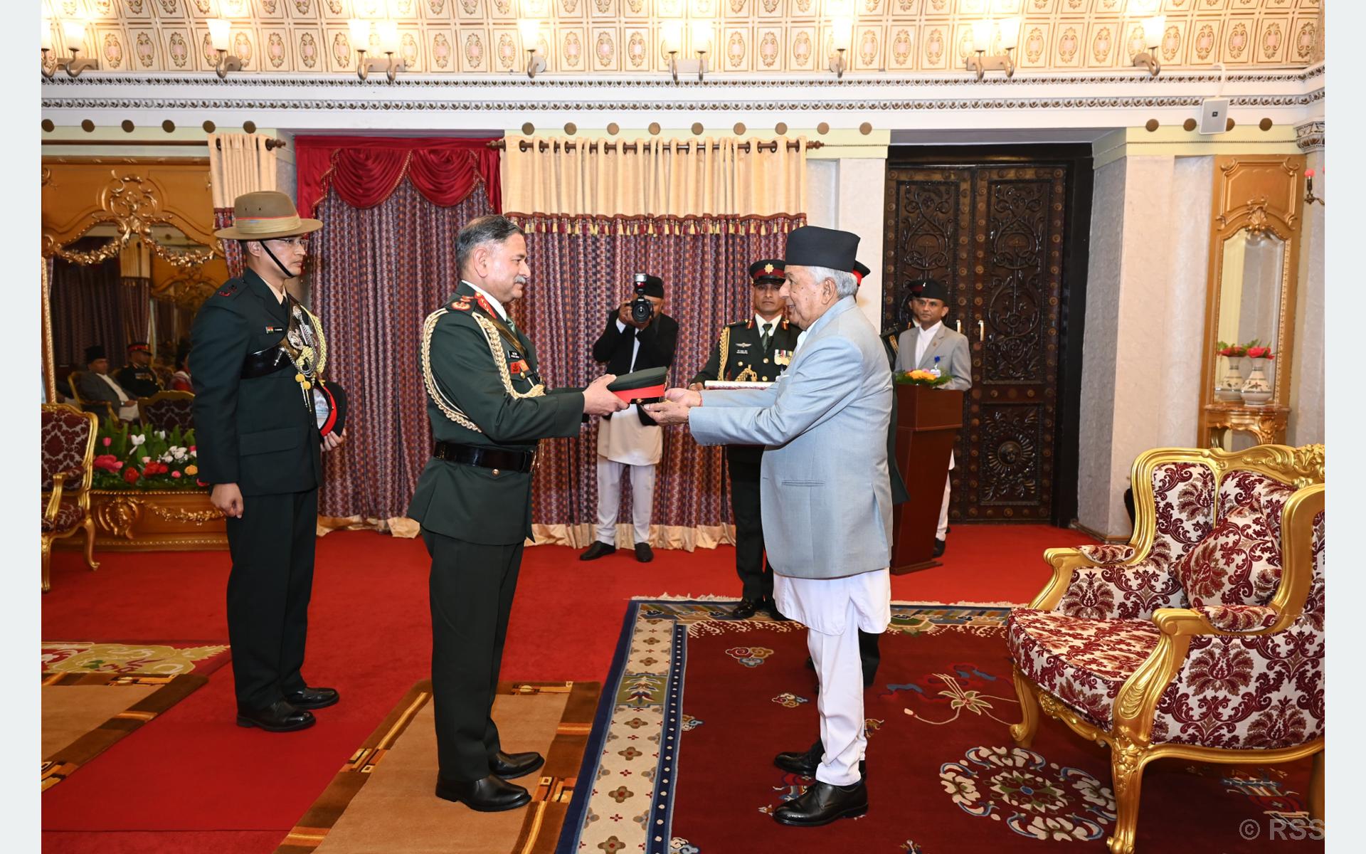 राष्ट्रपतिद्वारा भारतीय सेनाध्यक्षलाई ‘मानार्थ महारथीको दज्र्यानी चिन्ह’ प्रदान