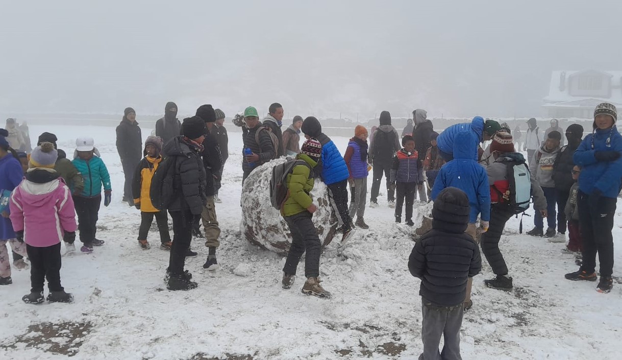 चैतको हिउँले खुम्बु क्षेत्र सेताम्मे : हिमपातपछि किसान खुसी