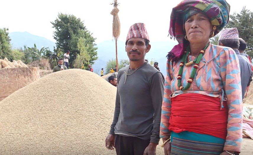 १६८ मुरी धान फलाएका बम्जन दम्पतीलाई गाउँपालिकाले दियो ५० हजार नगद