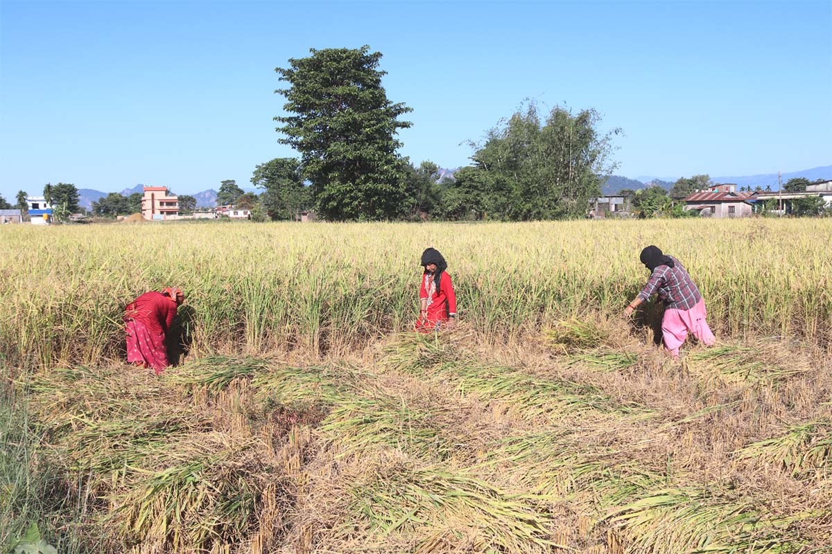 चितवनमा धान काट्ने चटारो, रोप्नेदेखि काट्नेसम्म तराई र भारतका श्रमिकको भर