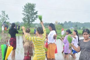 राष्ट्रिय धान दिवस : मन्त्री यादवले मेसिनबाट धान रोपे (फोटोफिचर)