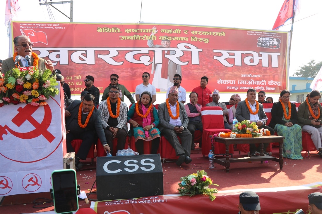 माओवादी केन्द्रले भरतपुरमा विशाल खबरदारी सभा गर्दै, सभालाई प्रचण्डले सम्बोधन गर्ने