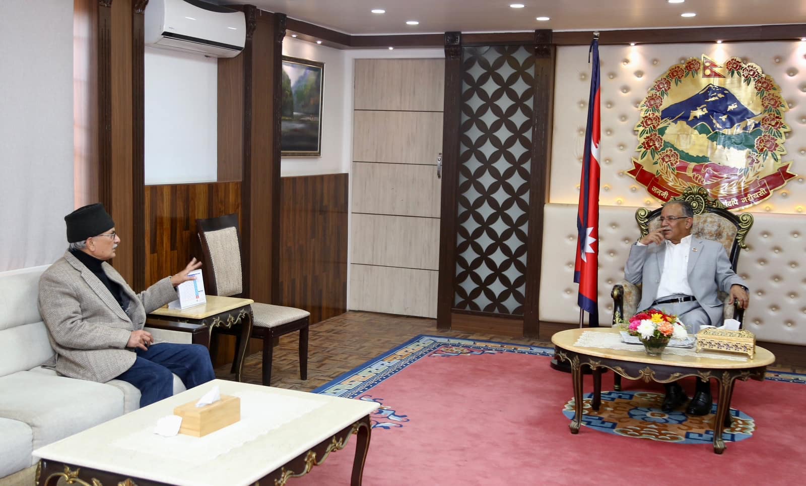प्रधानमन्त्री दाहाल, पूर्वप्रधानमन्त्री डा भट्टराई छलफल