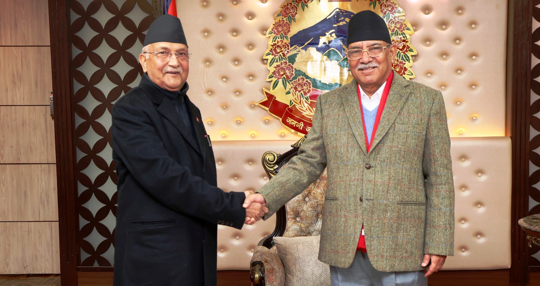 प्रधानमन्त्री प्रचण्ड र एमाले अध्यक्ष ओलीबीच भेटवार्ता
