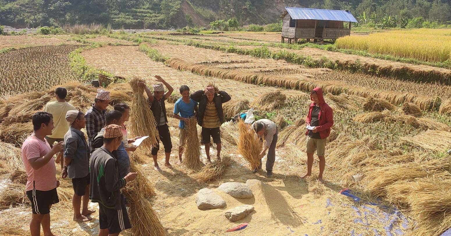 किसानको खेतमा धान झार्दै, भोट माग्दै खतिवडा