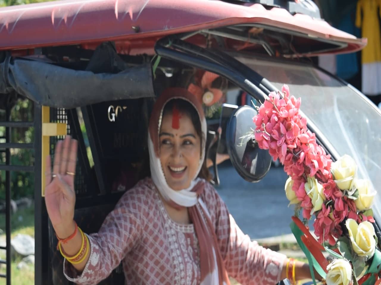 रिक्सा चलाएर भोट माग्न जनताको घरदैलोमा रेखा