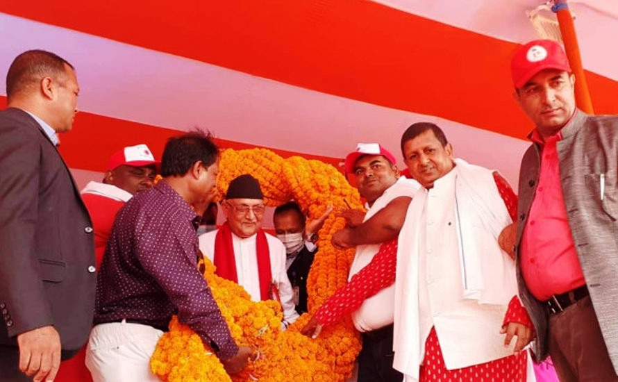 जनकपुरमा एमाले अध्यक्ष ओलीलाई २०५ किलोको माला