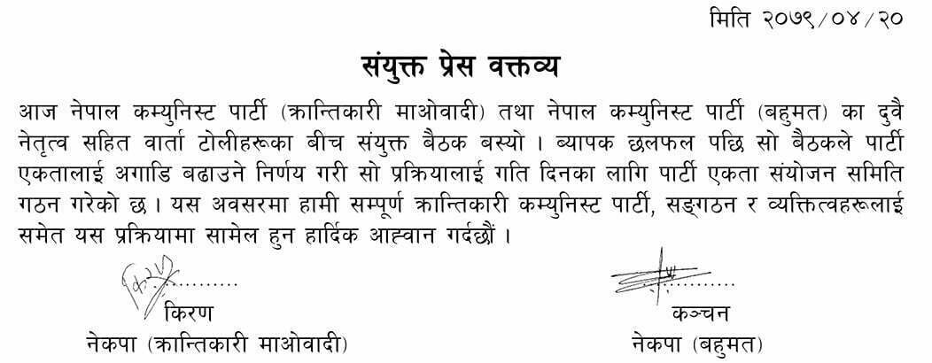 मोहन वैद्यको पार्टी र नेकपा बहुमतबीच पार्टी एकता