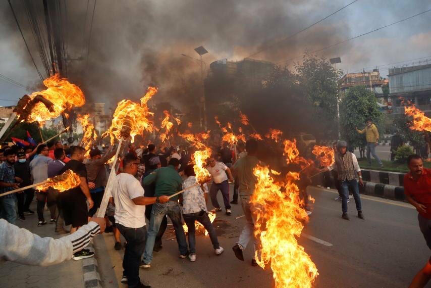 प्रहरी र मूल्यवृद्धि विरुद्ध उत्रिएकाबीच मसाल खोसाखोस (तस्बिरहरु)