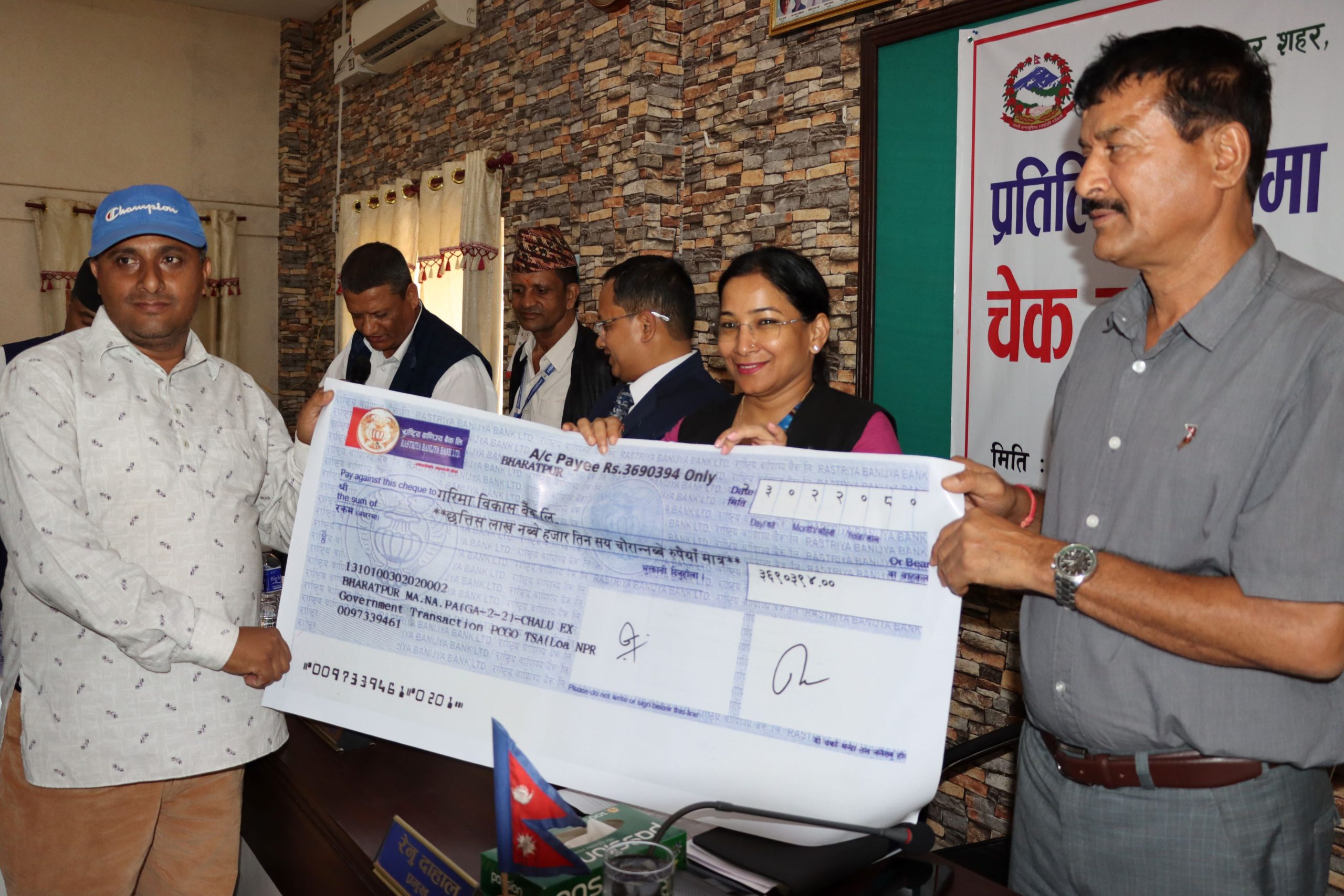 भरतपुर महानगरपालिकाद्धारा दूधमा अनुदान अन्तर्गत रु ६ करोड १२ लाख रुपैयाँ हस्तान्तरण