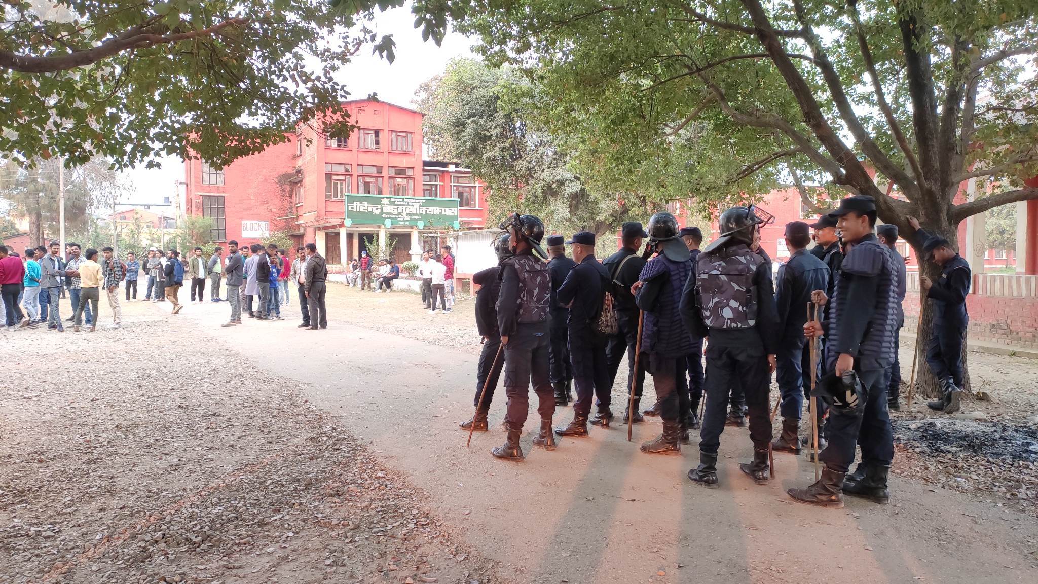 चितवनमा स्ववियु चुनाव गराउन खटियो प्रहरी : विद्यार्थीले लगाएको ताला फुटालियो, फेरि लगाए पक्राउ गर्ने चेतावनी