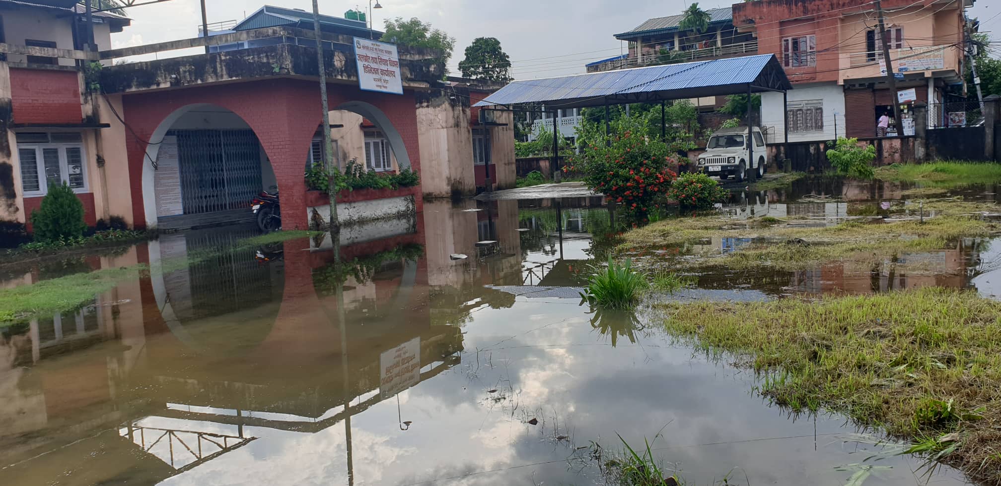 भरतपुरको सिंचाइ कार्यालय अगाडि पानीको ताल (फोटोफिचर)