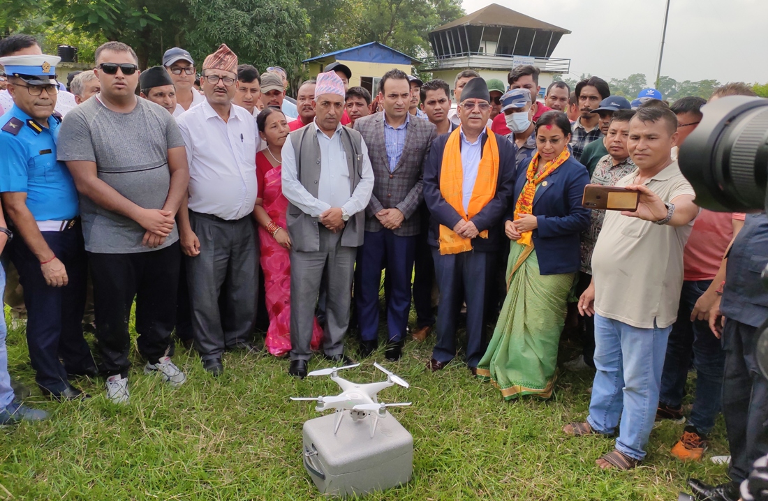 मेघौली विमानस्थल स्तरोन्नती गरिने : ड्रोन उडाएर प्रचण्डले गरे ‘टोपोग्राफी सर्भे’ (भिडियो)