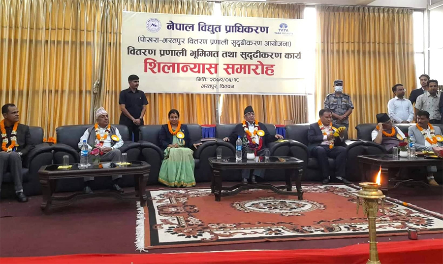 विजुलीको तार भूमिगत गर्ने परियोजनाको कुलमान र प्रचण्डले गरे शिलान्यास