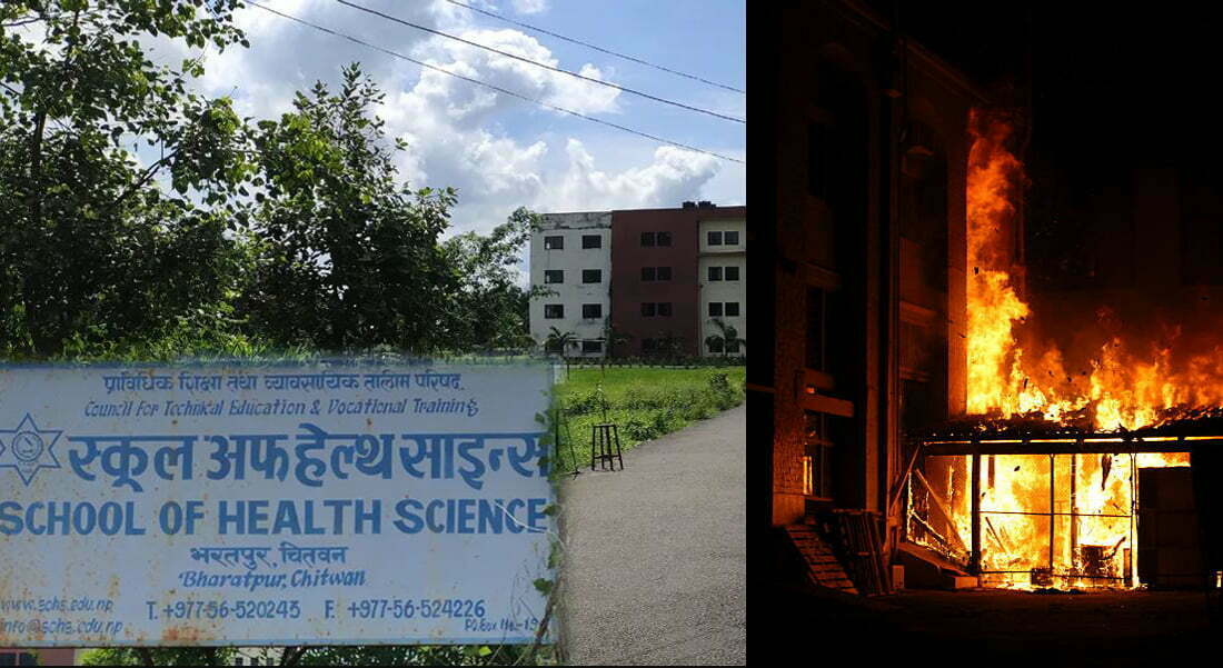 भरतपुरको स्कुल अफ हेल्थ साइन्समा आगलागी, करोडौंको क्षति