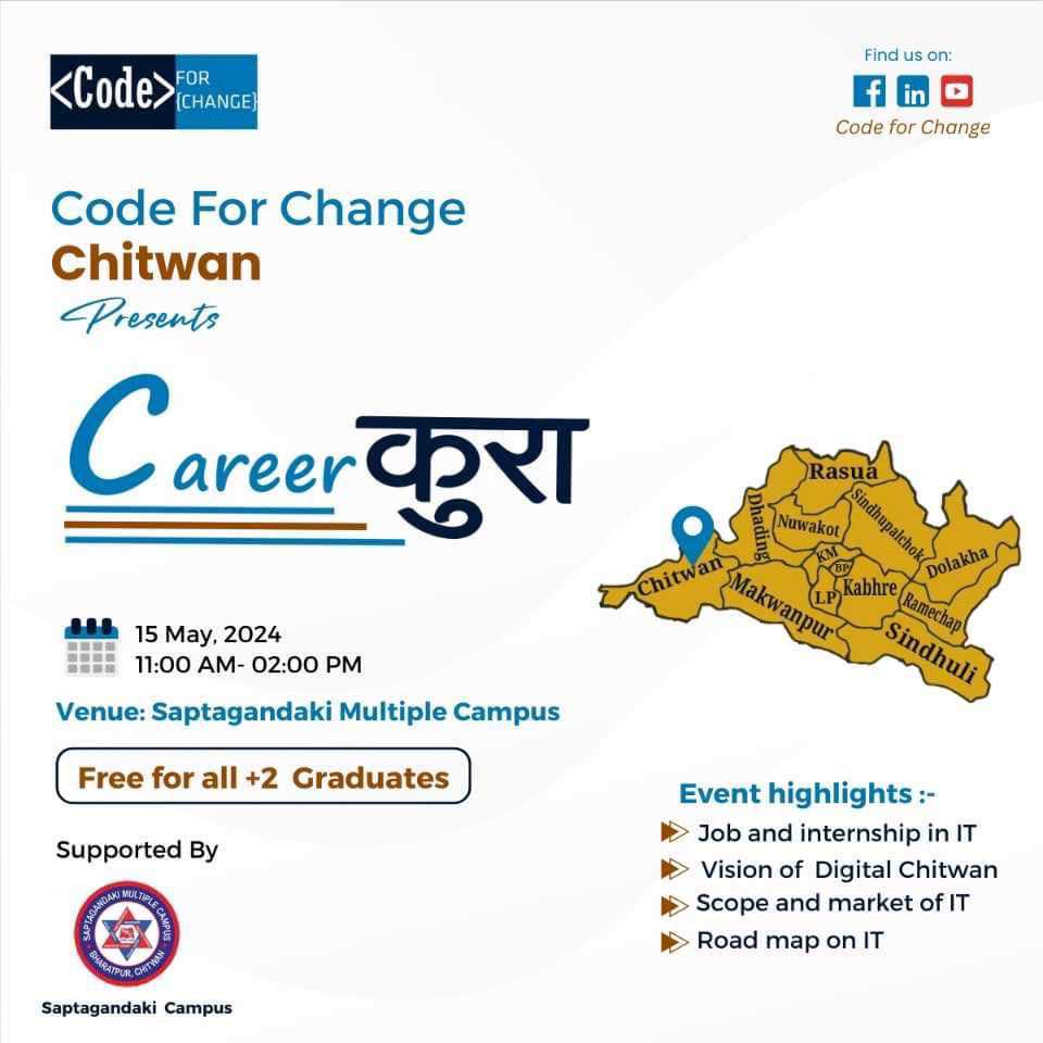 जेठ २ गते कोड फर चेन्ज चितवनले ‘ करियर कुरा ’ कार्यक्रम आयोजना गर्दै