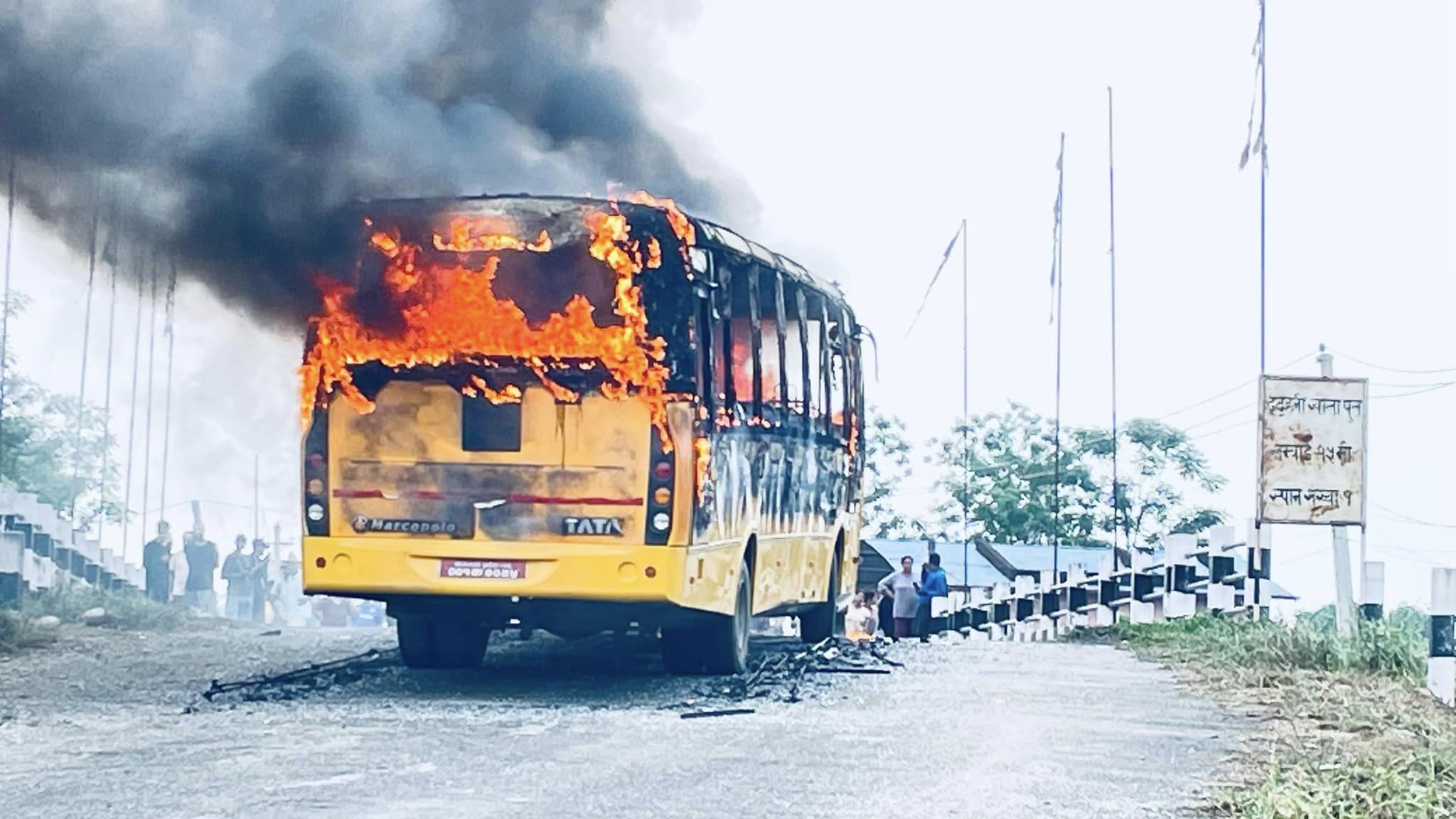 भरतपुरमा अज्ञात समूहद्वारा स्मल हेभन स्कुलको बस आगजनी