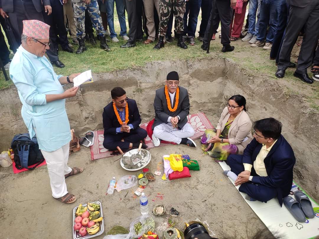 नारायणी नदीमा बन्ने सिग्नेचर पुलको प्रधानमन्त्री प्रचण्डद्वारा शिलान्यास