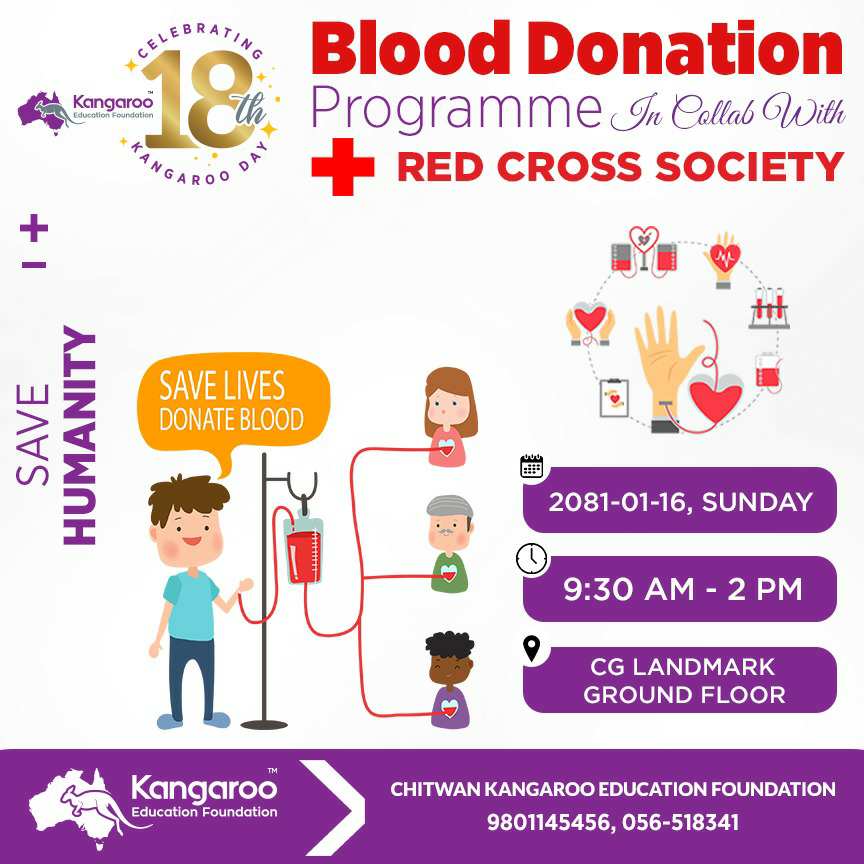 भरतपुरमा कंगारु एजुकेशनले रक्तदान कार्यक्रम आयोजना गर्ने