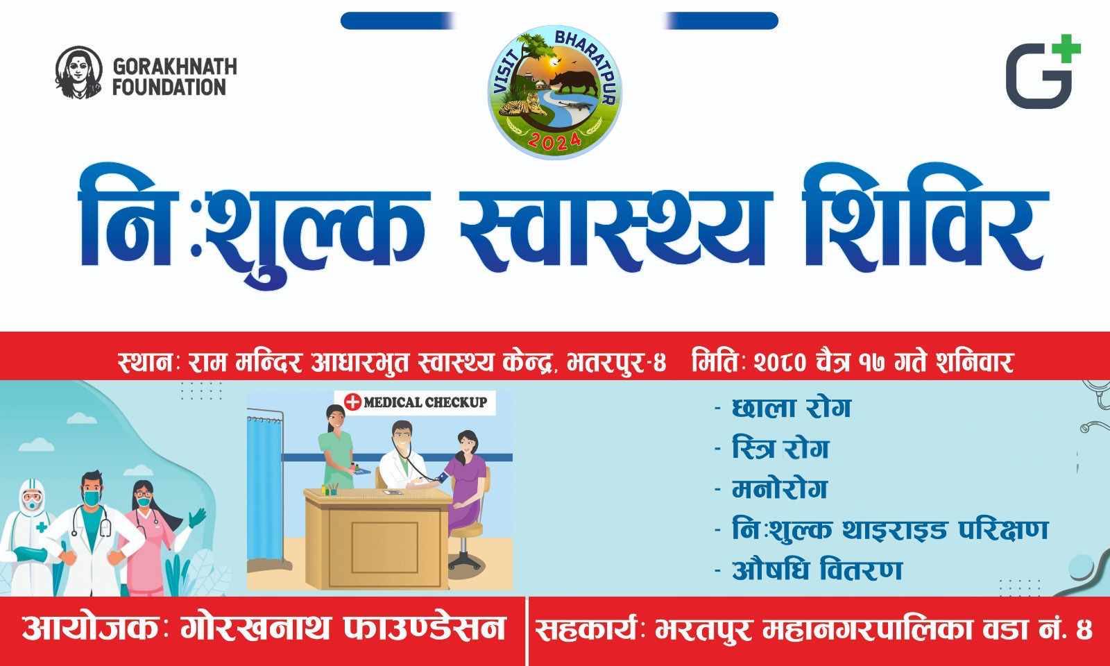 भरतपुर – ४ को राम मन्दिर स्वास्थ्य केन्द्रमा भोलि नि:शुल्क स्वास्थ्य शिविर हुँदै