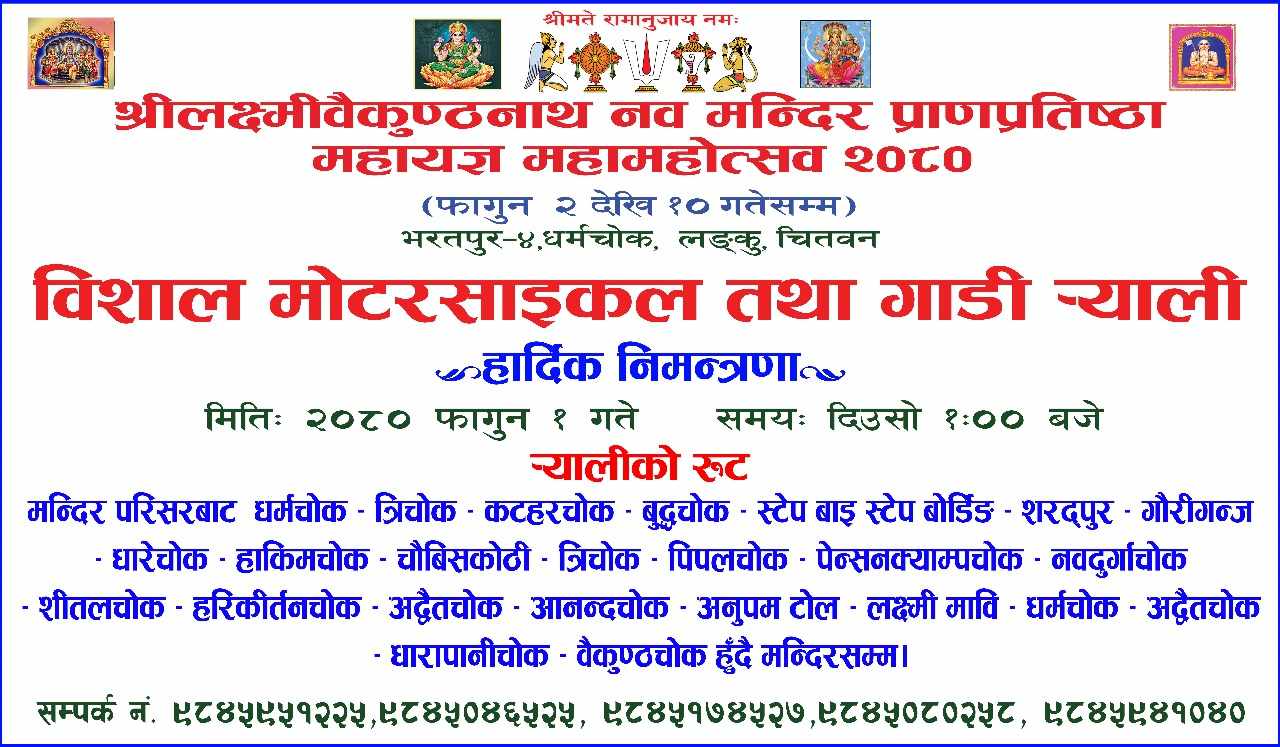 भोलि लंकुमा प्राणप्रतिष्ठा महोत्सवको प्रचारार्थ मोटर साइकल तथा गाडी र्याली हुने