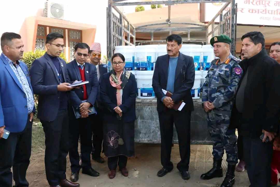 भरतपुरको आँपटारीचोकदेखि देवघाटको सडकसम्म दायाँ–बायाँका रुख र पोलमा रङ रोगन गरिने