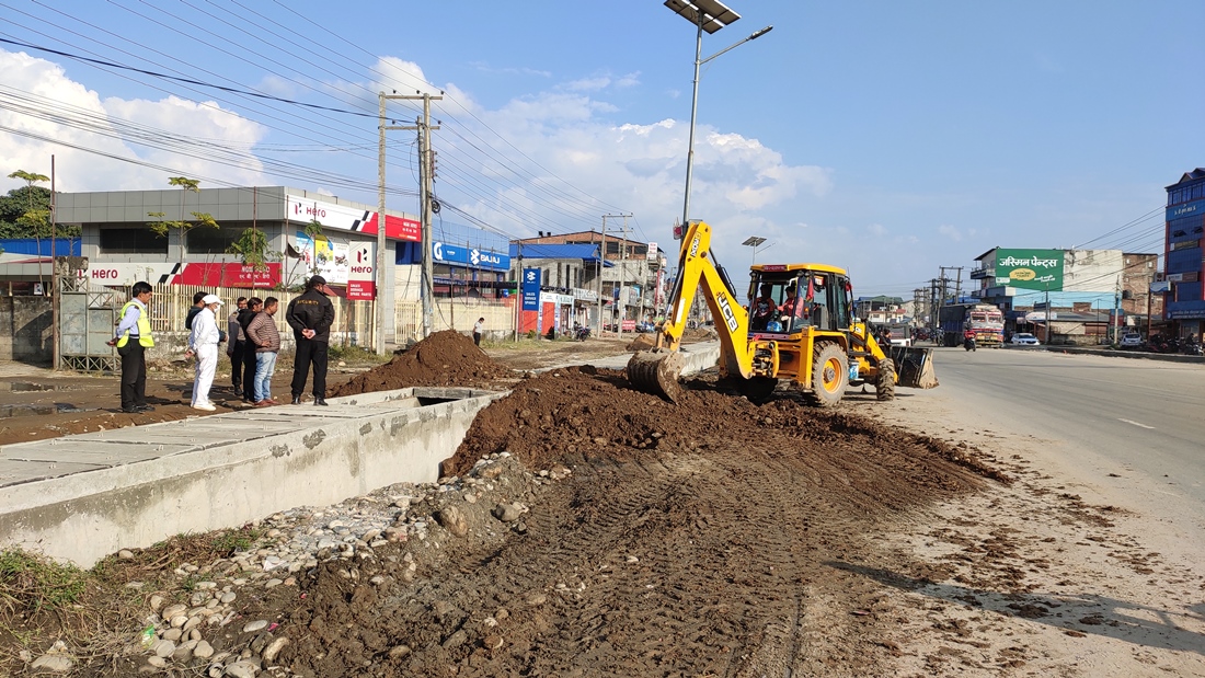 बजेट अभावमा अलपत्र पर्यो भरतपुरको छ लेन सडक