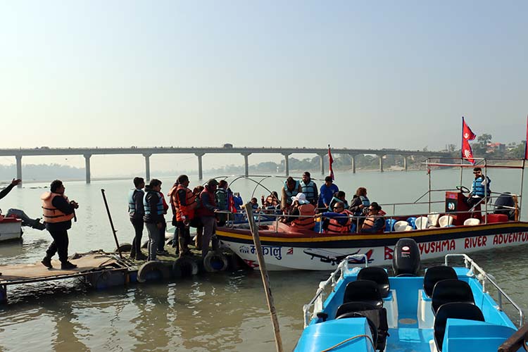 नारायणी नदीमा मोटरबोट चढ्नेको भीड