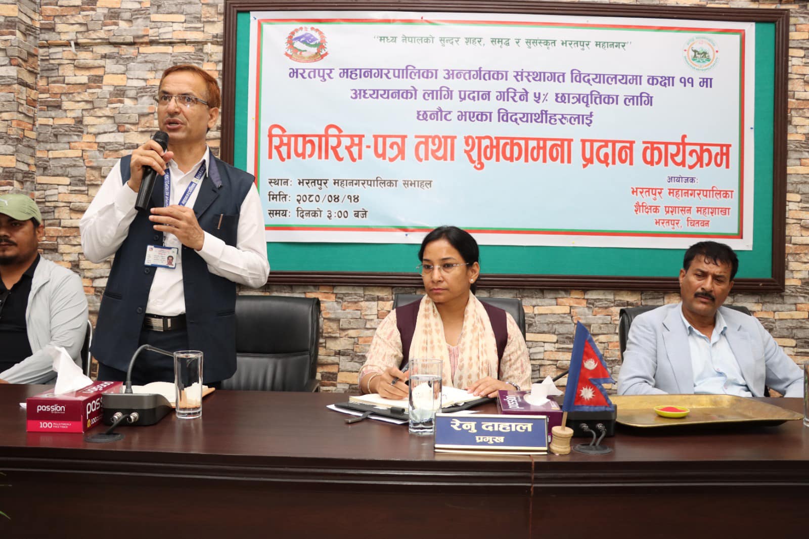 भरतपुर महानगरपालिकाद्वारा २८३ जनालाई छात्रवृत्ति वितरण