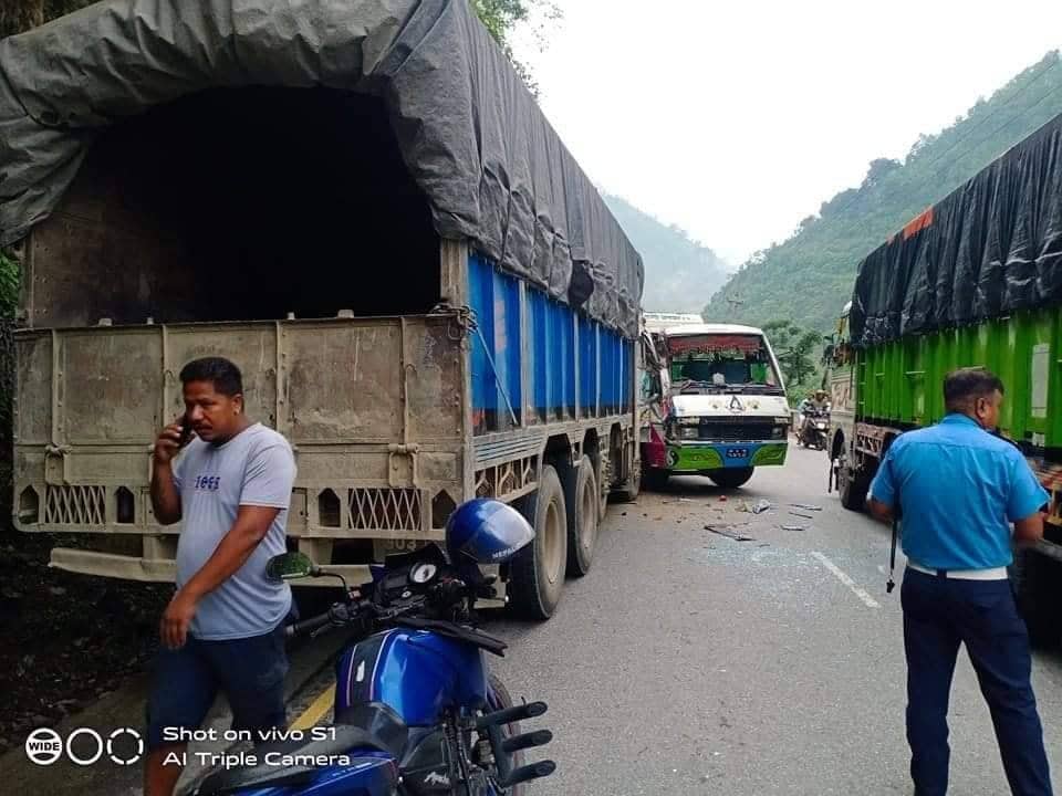 नारायणगढ–मुग्लिन सडकखण्डमा बस र ट्रक ठोक्कियो : तीन जना घाइते