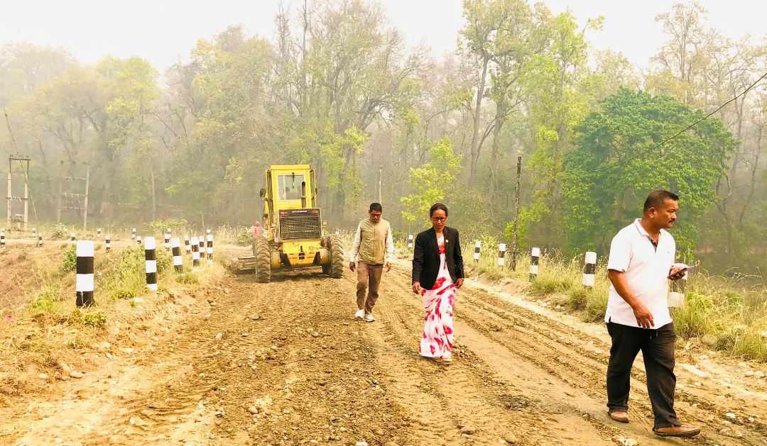 माडीबाट भरतपुर आउने निकुञ्जभित्रको बाटो मर्मत सुरु