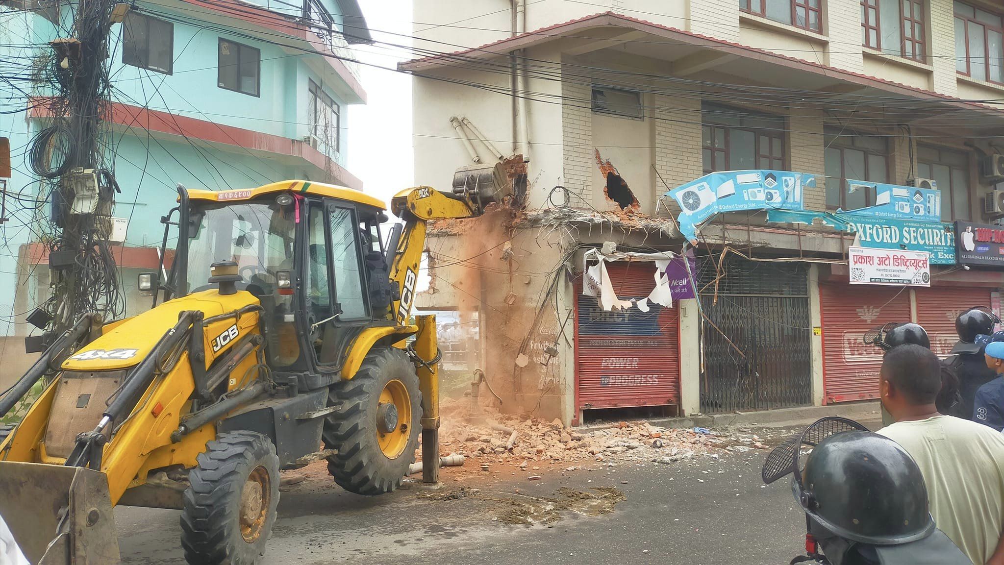 मापदण्ड विपरित लायन्स कल्बको भवनमा भरतपुर महानगरको डोजर