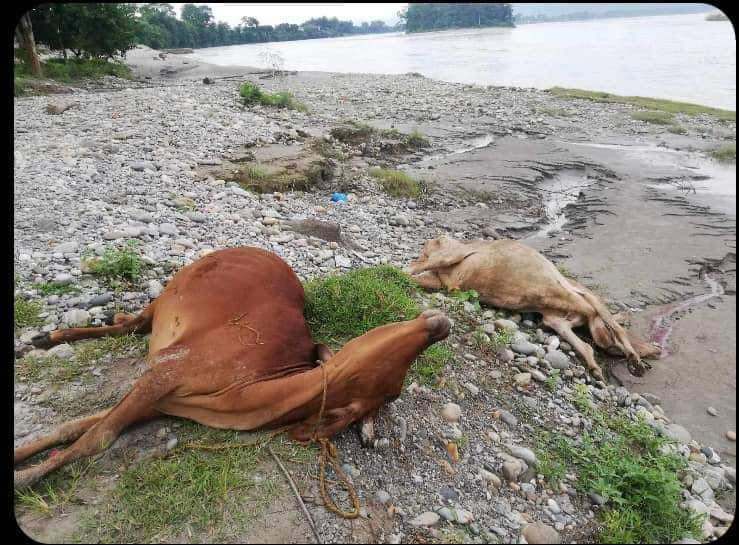 नारायणी नदीकिनारमा दुई वटा गाई मृत फेला