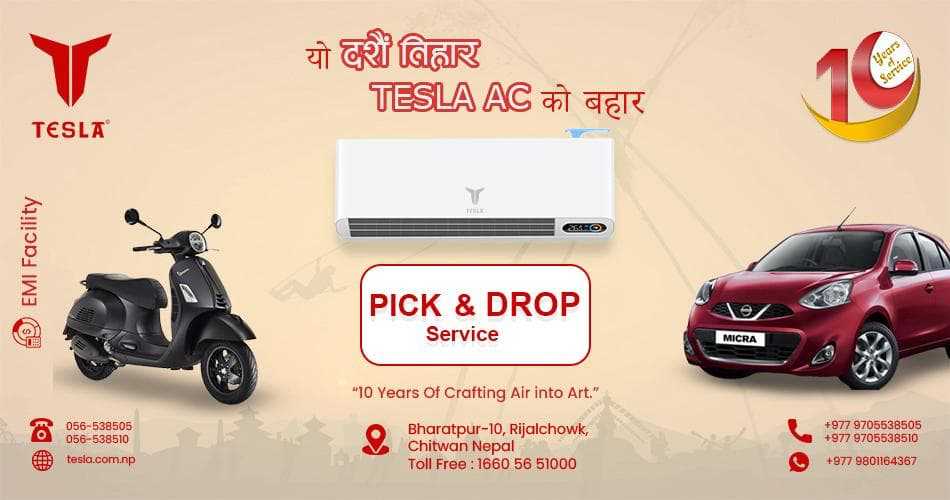 टेस्ला एसी खरिद गर्न चाहाने ग्राहकलाई ‘पिक एण्ड ड्रप’ को सुविधा