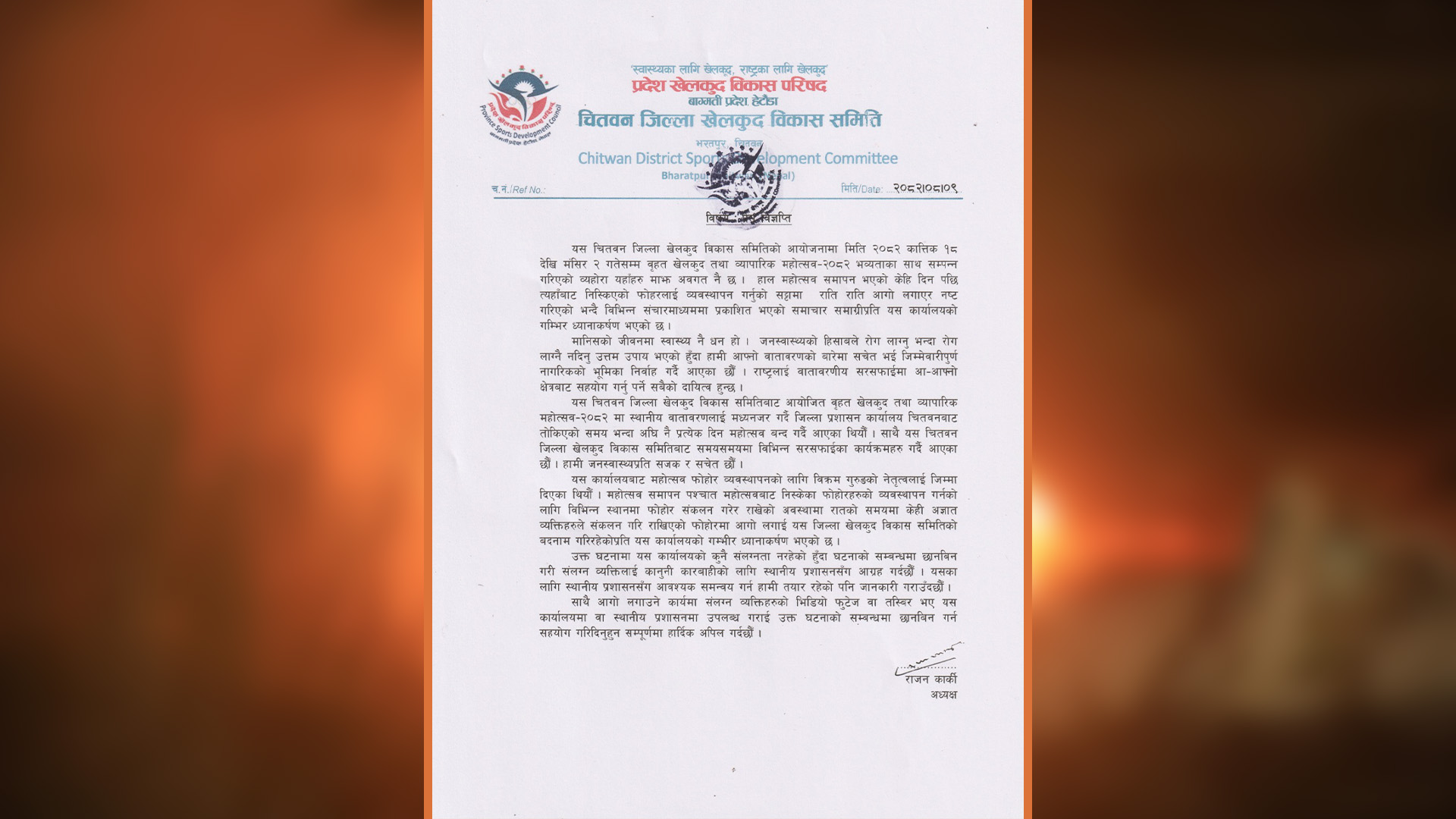 महोत्सवको फोहोर जलाएको प्रकरण : अनुसन्धान गरी दोषीलाई कारबाही गर्न आयोजकको माग