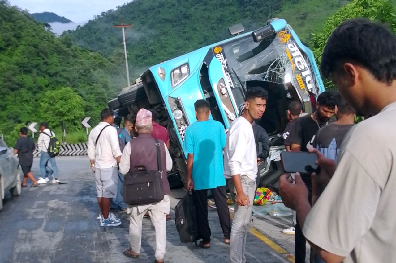 नारायणगढ–मुग्लिन सडकखण्डमा बस दुर्घटनाः १७ जना घाइते (विवरणसहित)